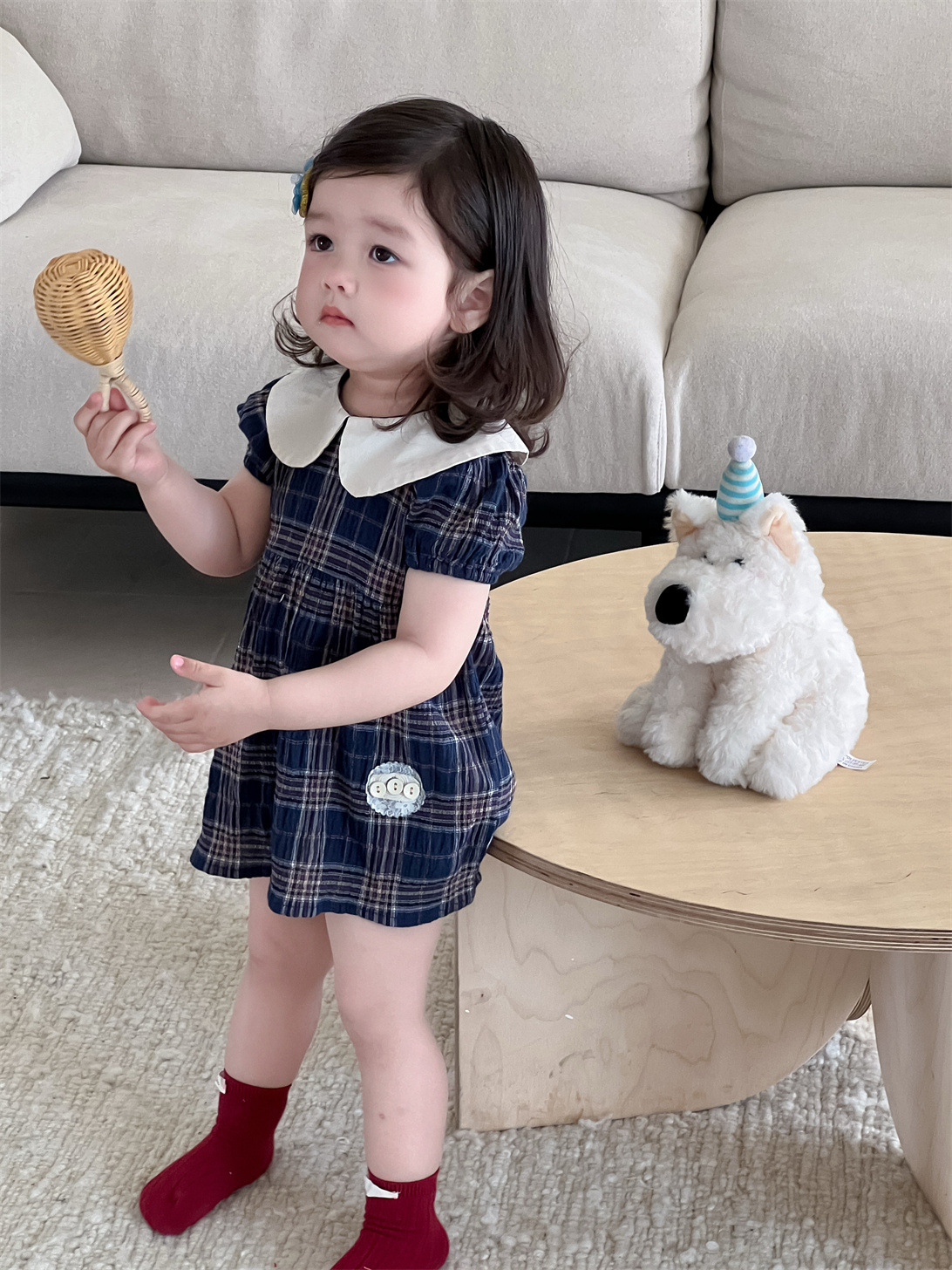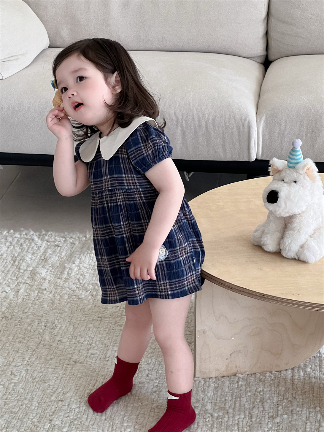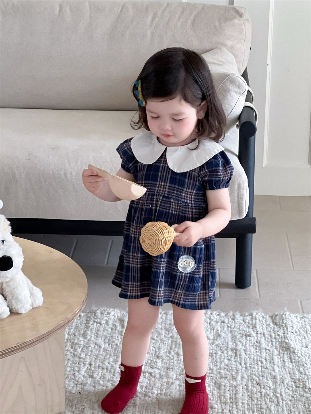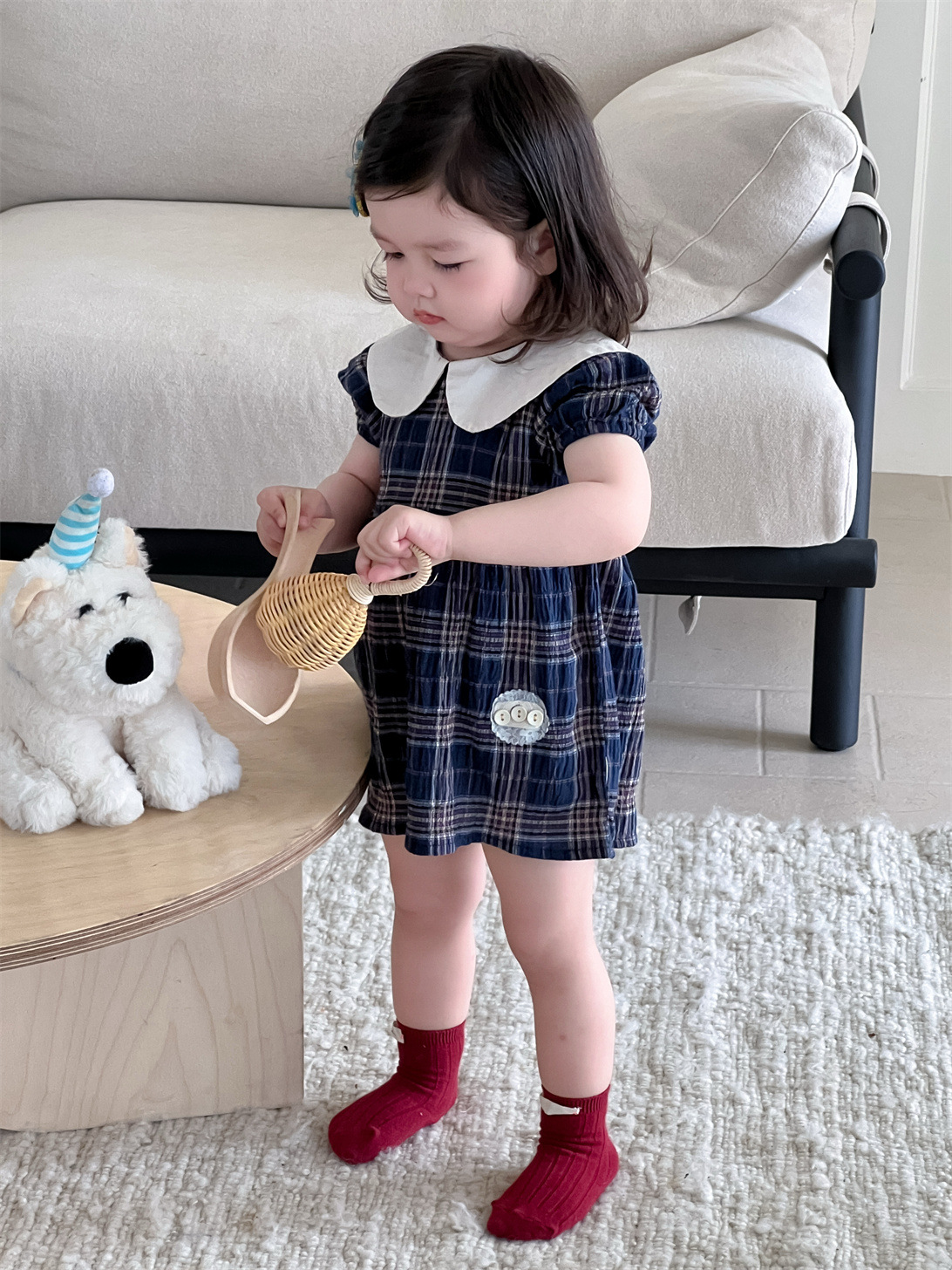 여아 드레스 여름 얇은 한국 스타일 아동복 여아 인형 칼라 체크무늬 스커트 2026 신상 여름 드레스스토어 가기