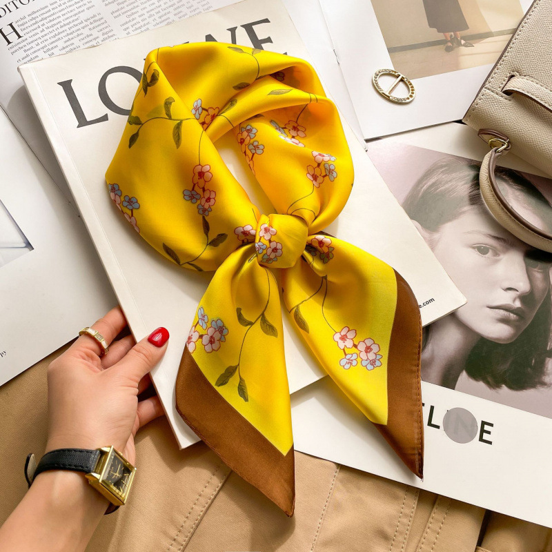 70 실크 스카프 스퀘어 스카프 여성 한국식 블랙 캐슈 플라워 실크 스카프 벨트 고급 장식 허리 씰 타이 헤어 스카프스토어 가기