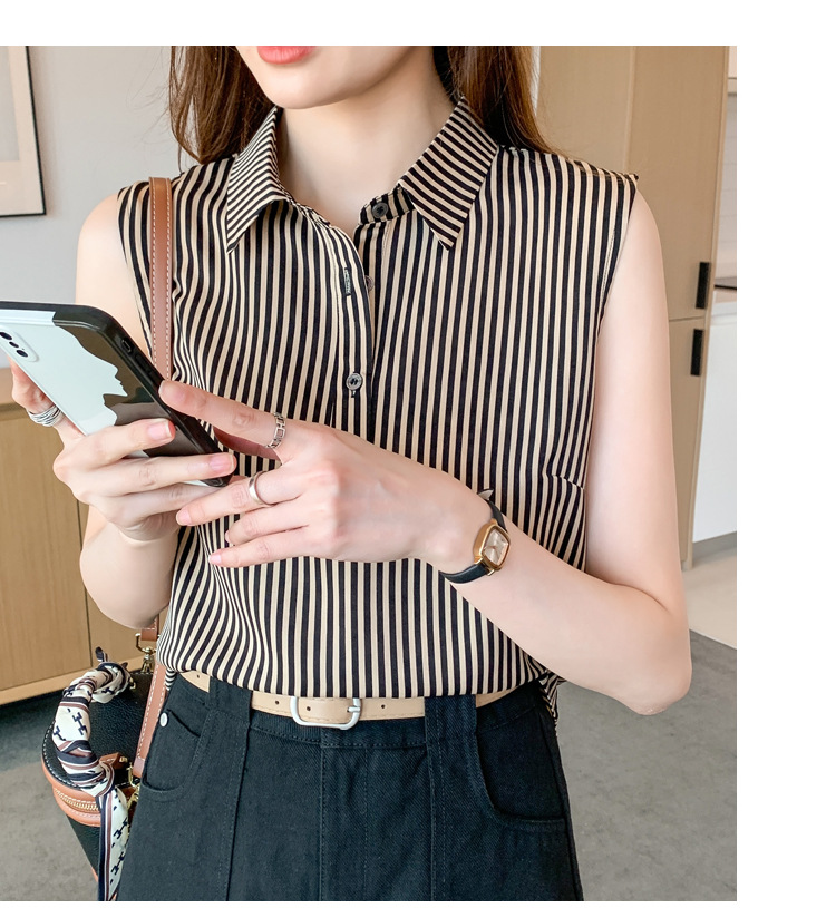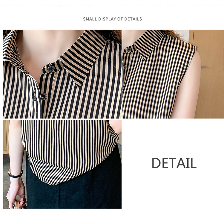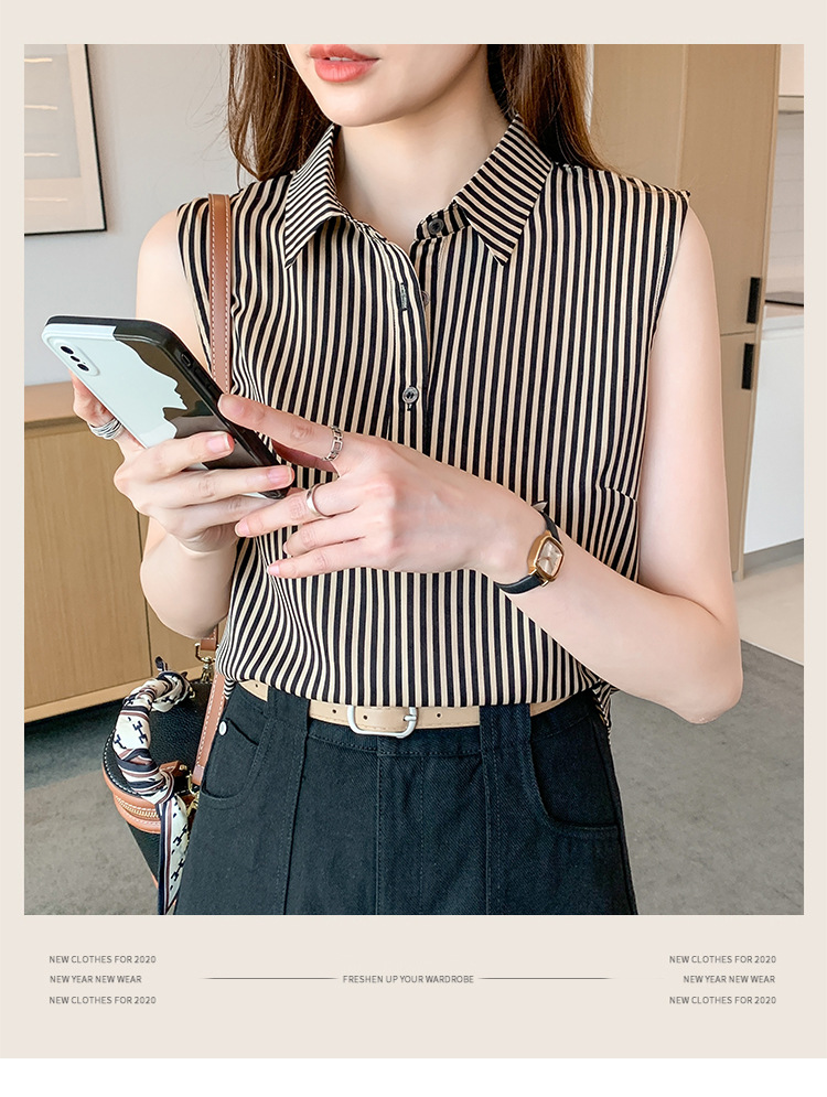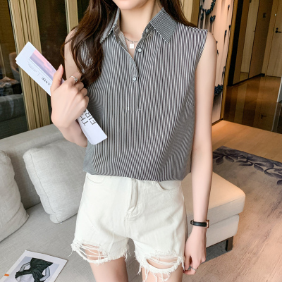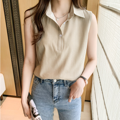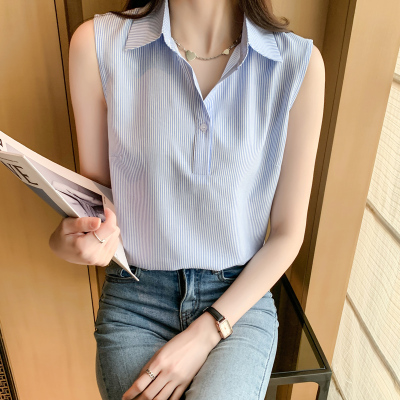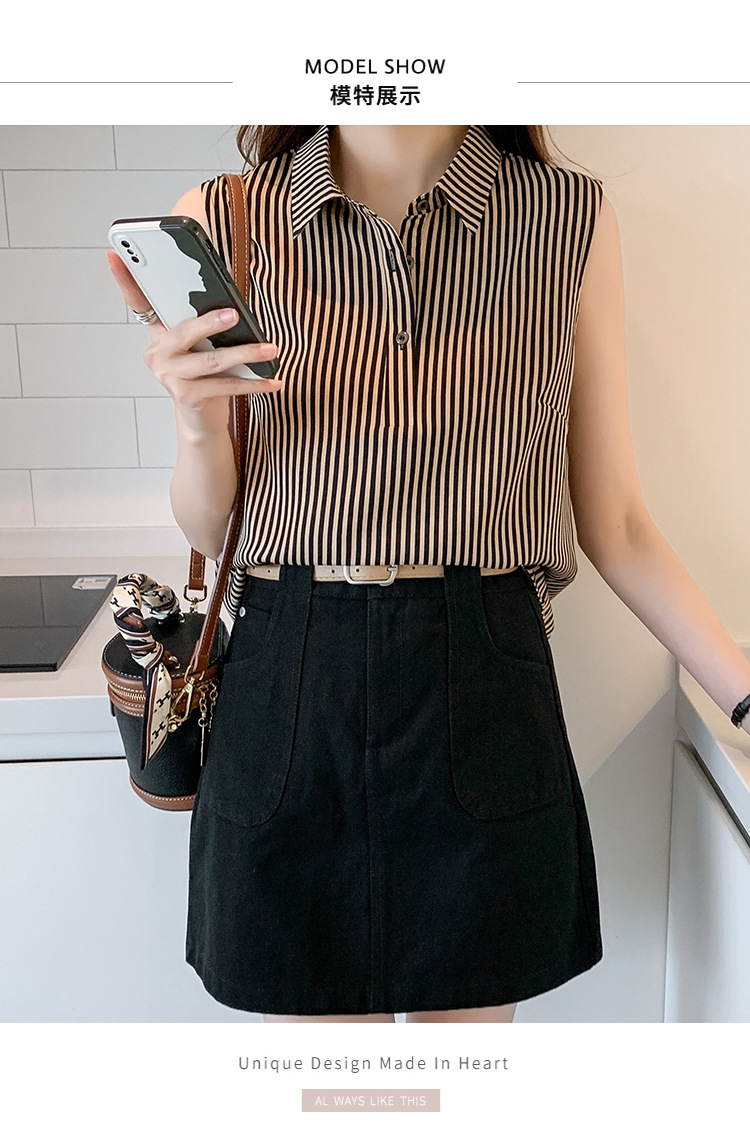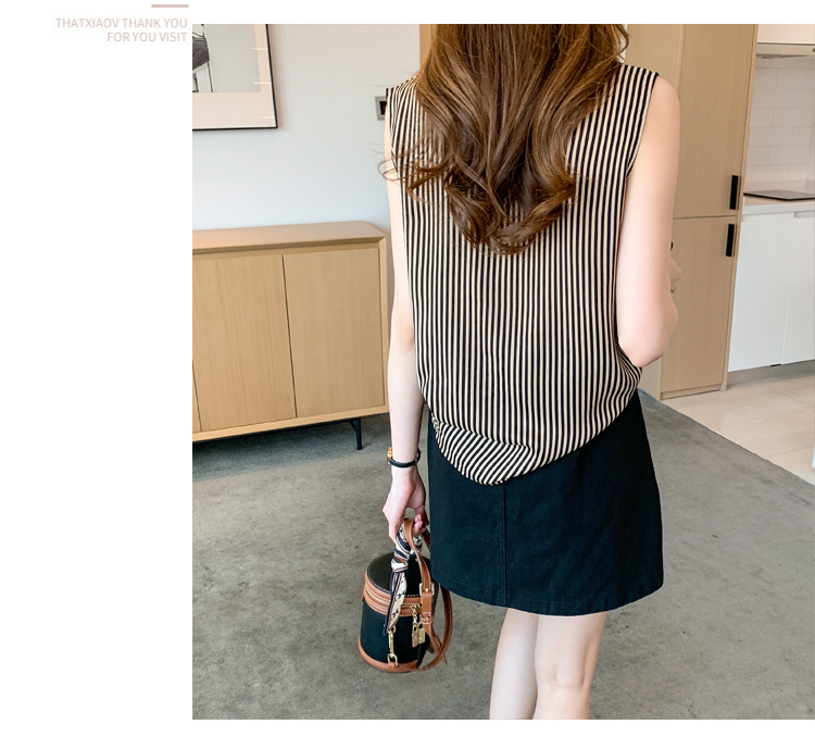 여성용 프렌치 패셔너블 여름 스트라이프 조끼, 아우터 셔츠, 민소매 쉬폰 밑단 셔츠, 이너탑스토어 가기