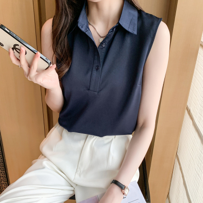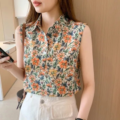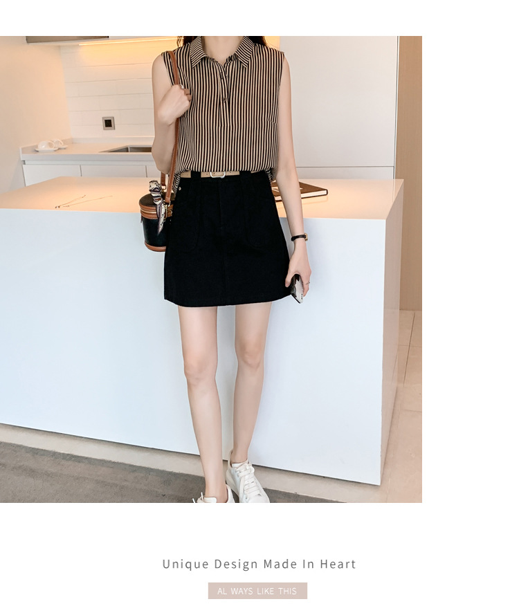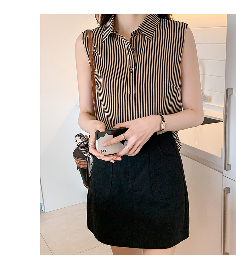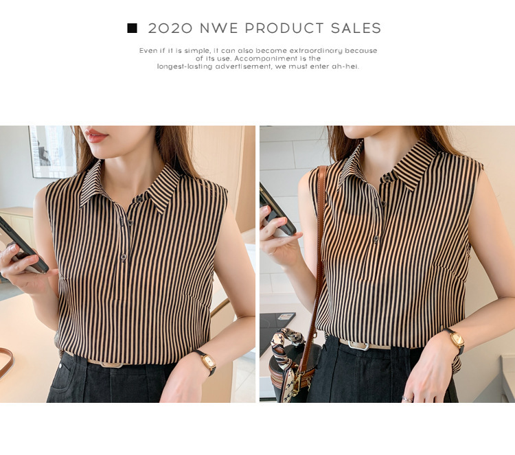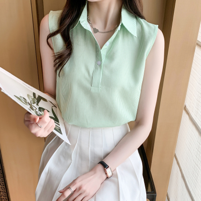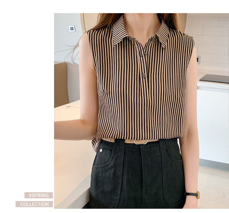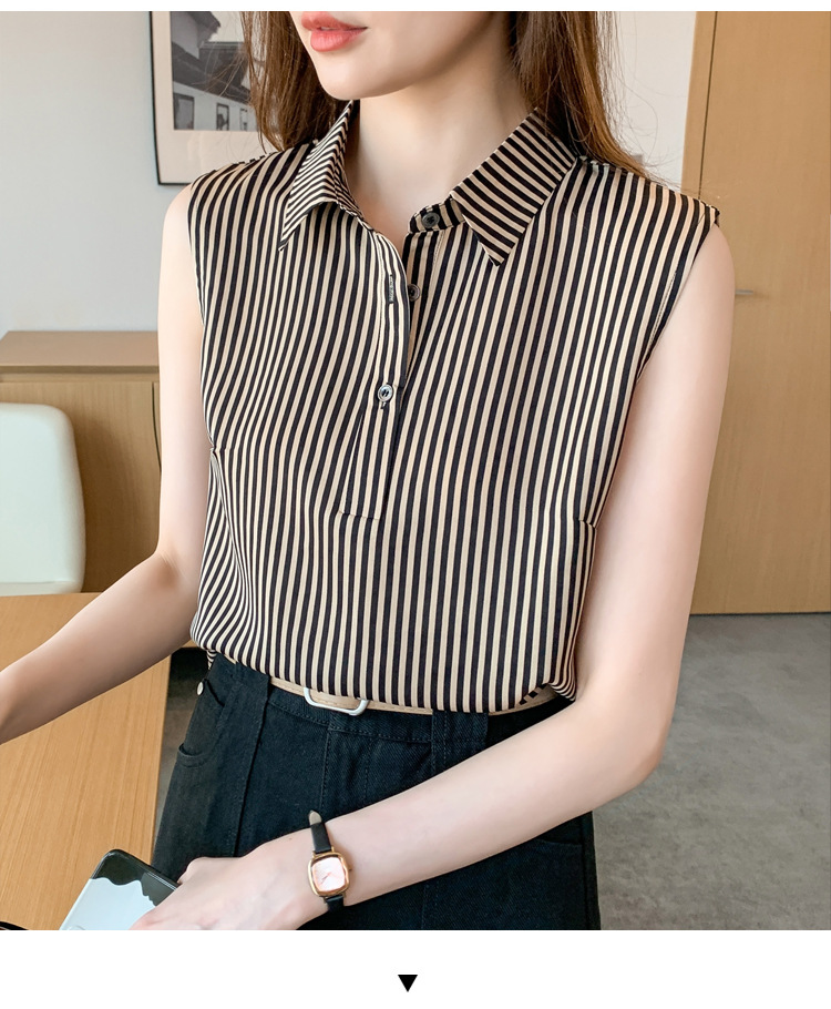 여성용 프렌치 패셔너블 여름 스트라이프 조끼, 아우터 셔츠, 민소매 쉬폰 밑단 셔츠, 이너탑스토어 가기