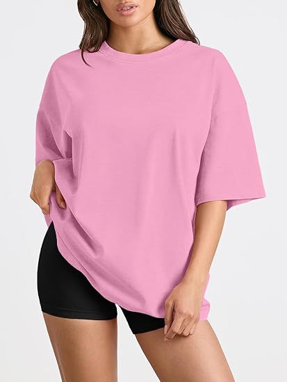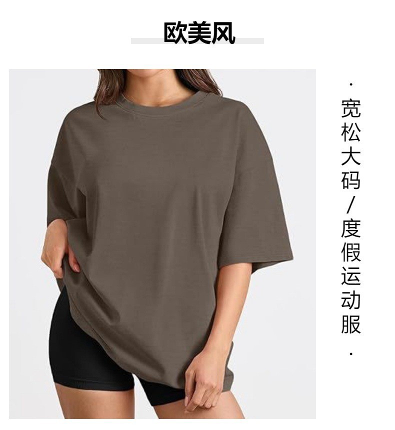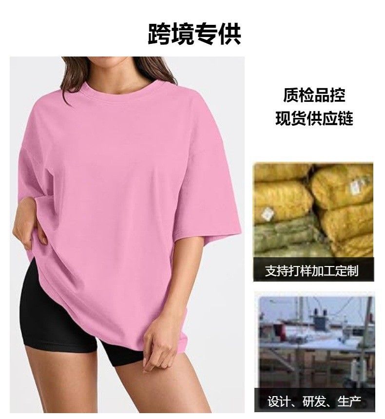 아마존 국경 무역 티셔츠 여성 2025 년 여름 새로운 솔리드 컬러 느슨한 캐주얼 라운드 넥 짧은 소매 플러스 사이즈 탑스토어 가기