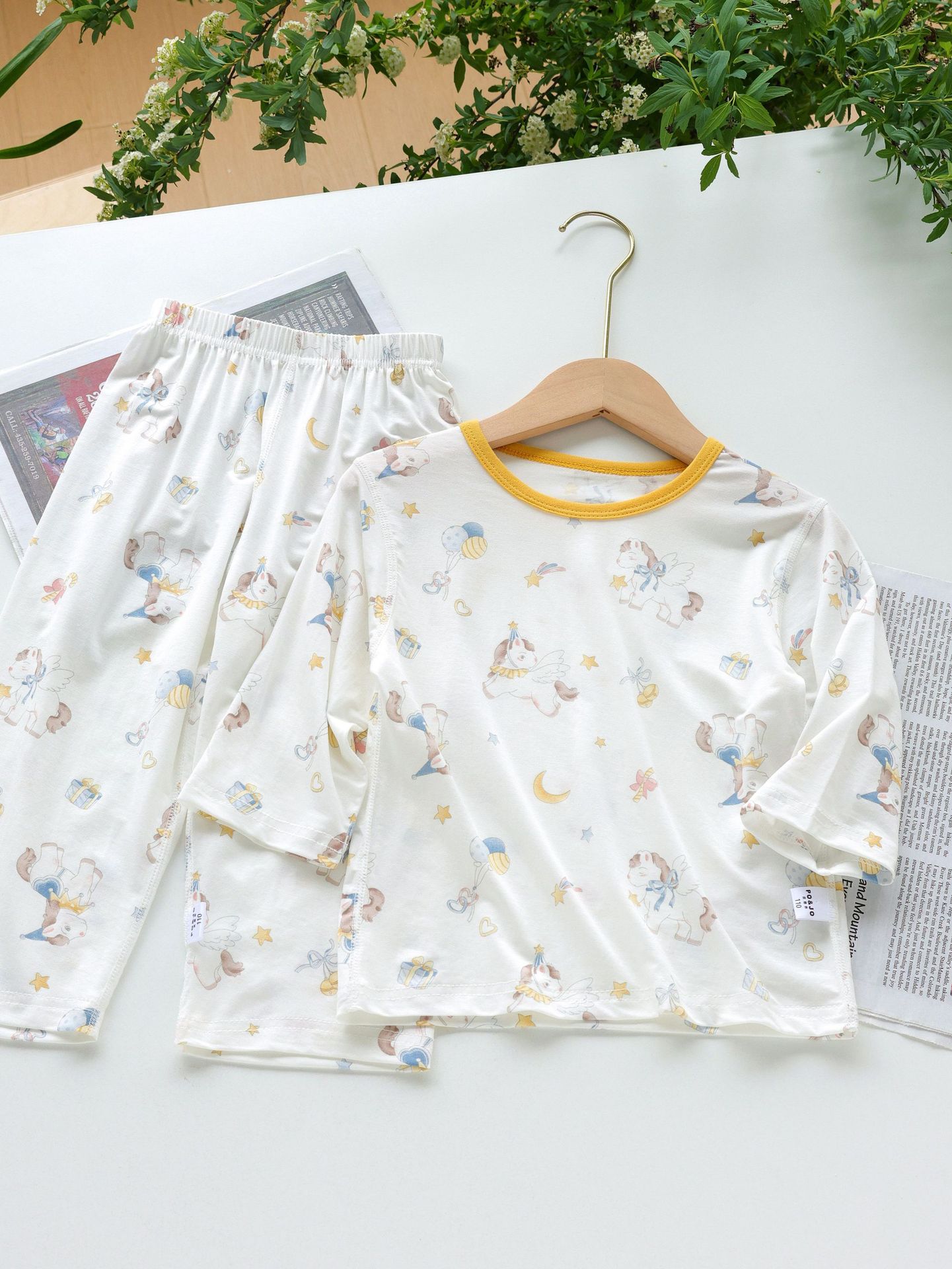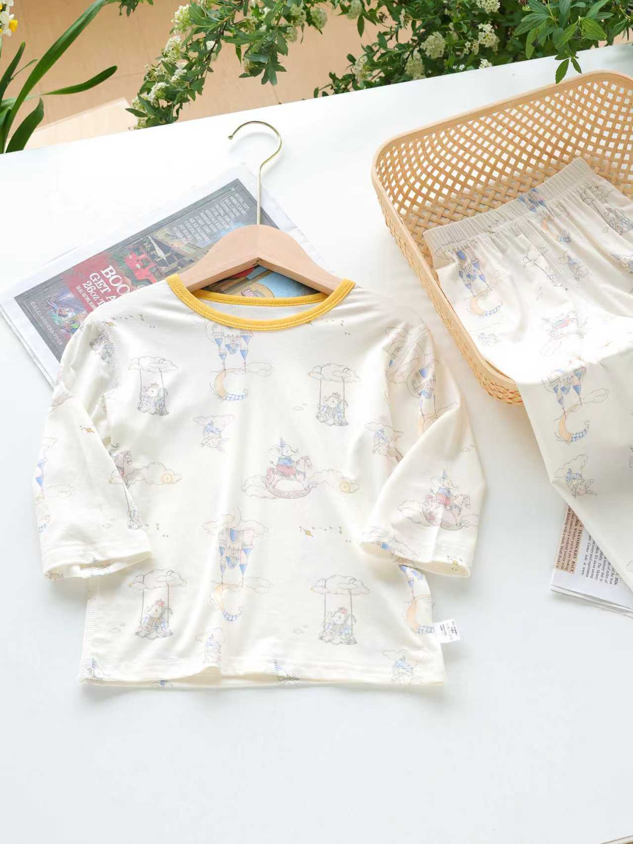 아동용 여름 텐셀 리오셀 홈웨어 세트 7부소매 9부팬츠 남아 및 여아용 무봉제 에어컨 의류스토어 가기