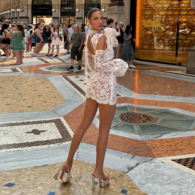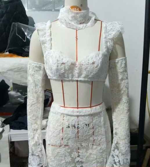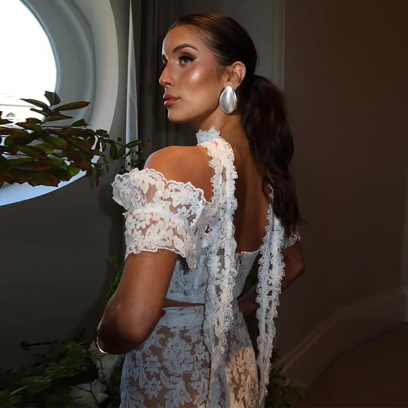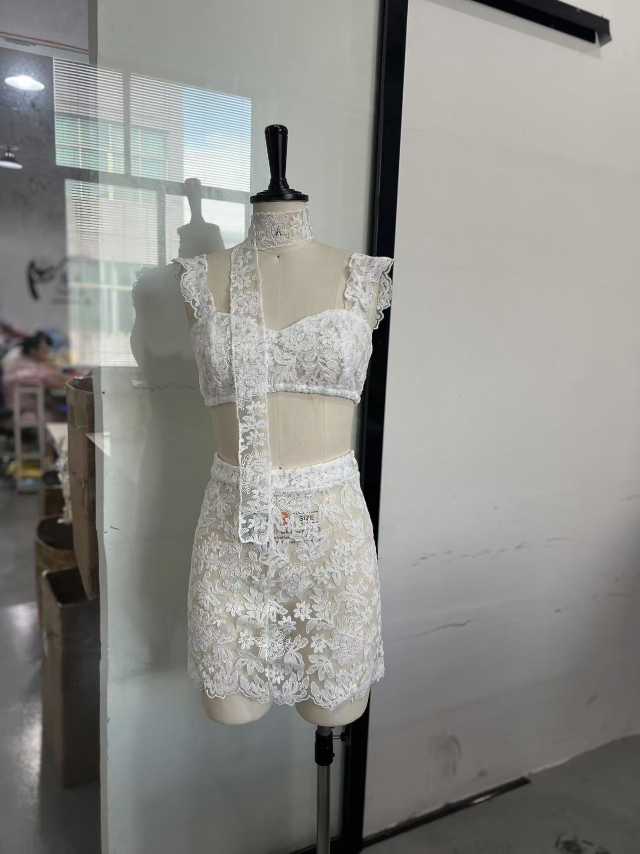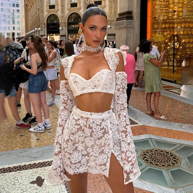 유럽과 미국 국경 2025 봄과 여름 여성 패션 캐주얼 세트 개성 스트리트 레이스 속이 빈 스커트 세트스토어 가기