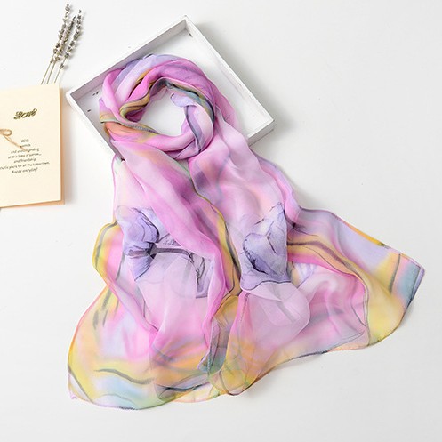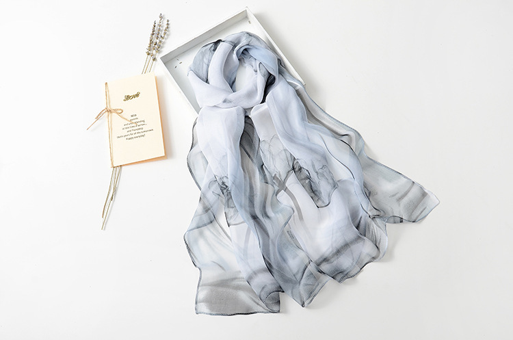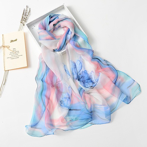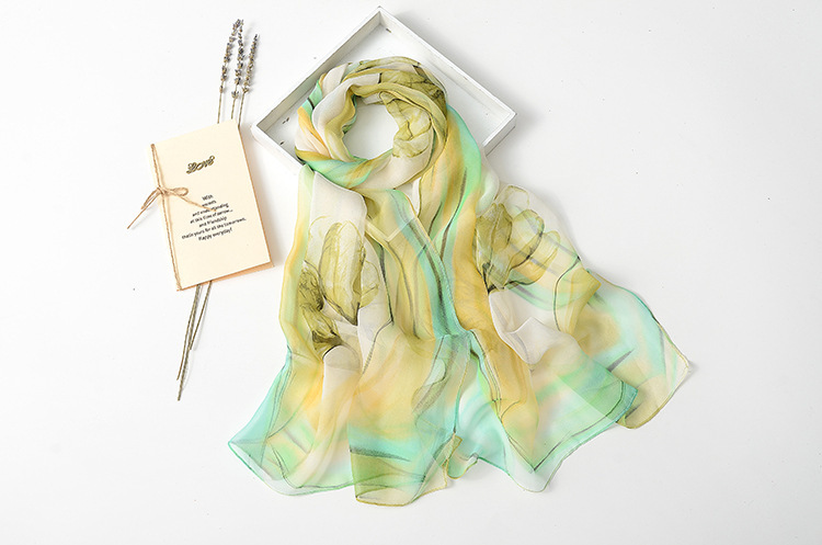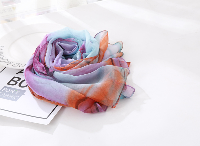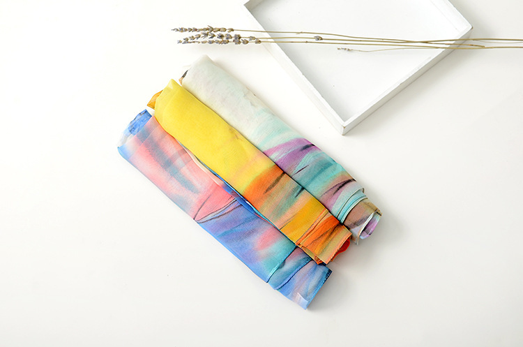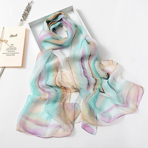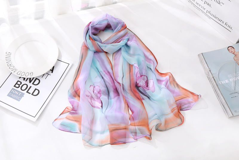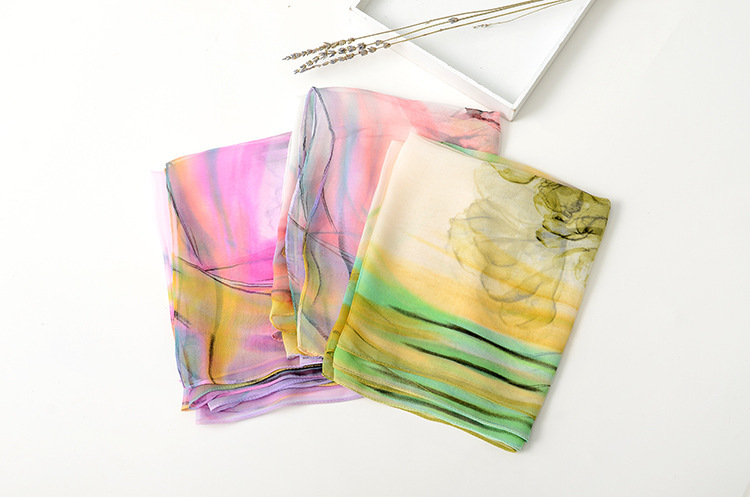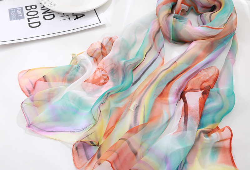 봄과 여름 가볍고 얇은 댄스 장식 작은 실크 스카프 여성 쉬폰 인쇄 좁은 스카프 목 스카프 부드러운 거즈 인쇄 비치 타월 유행스토어 가기