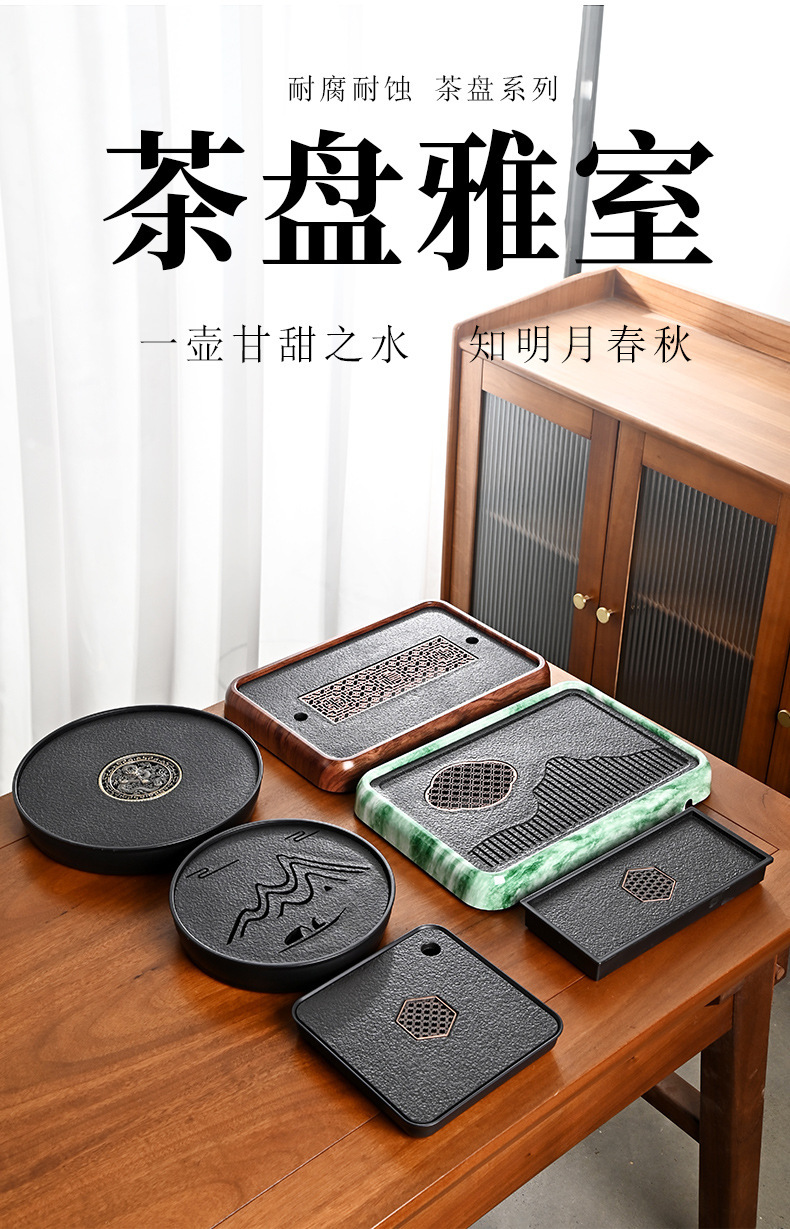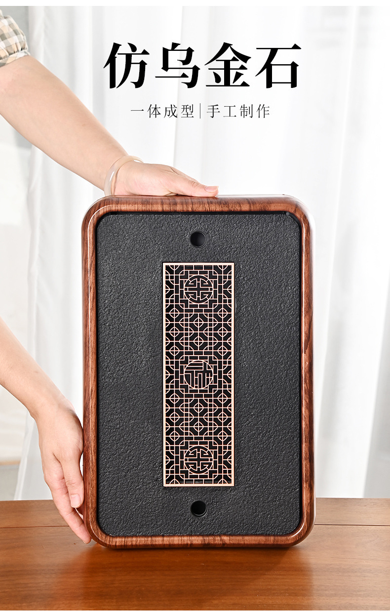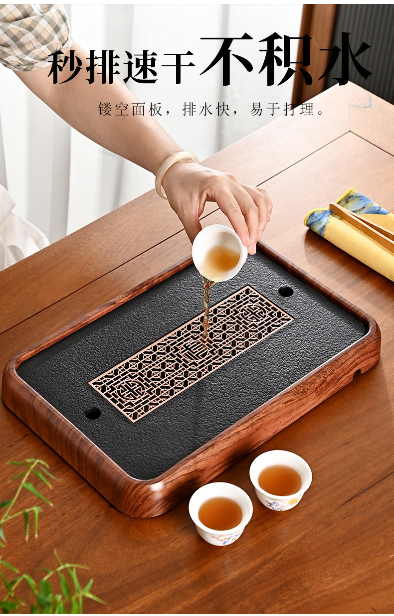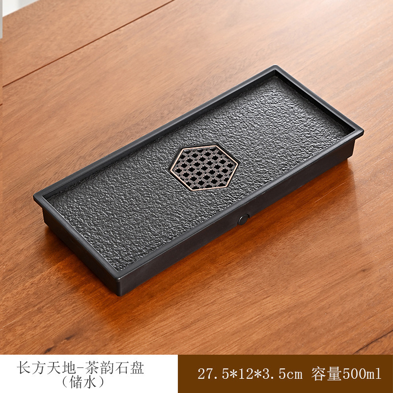티 트레이, 가정용 차 세트, 차 테이블, 물 저장 및 배수 유형, 모조 검은색 돌 건조 버블 테이블, 가벼운 럭셔리 현대 트레이, 단단한 나무 차스토어 가기