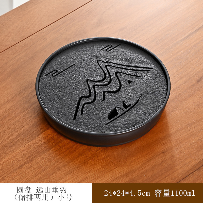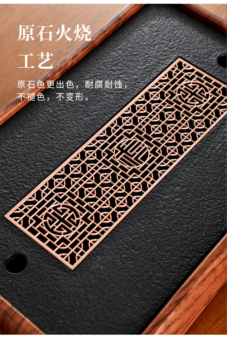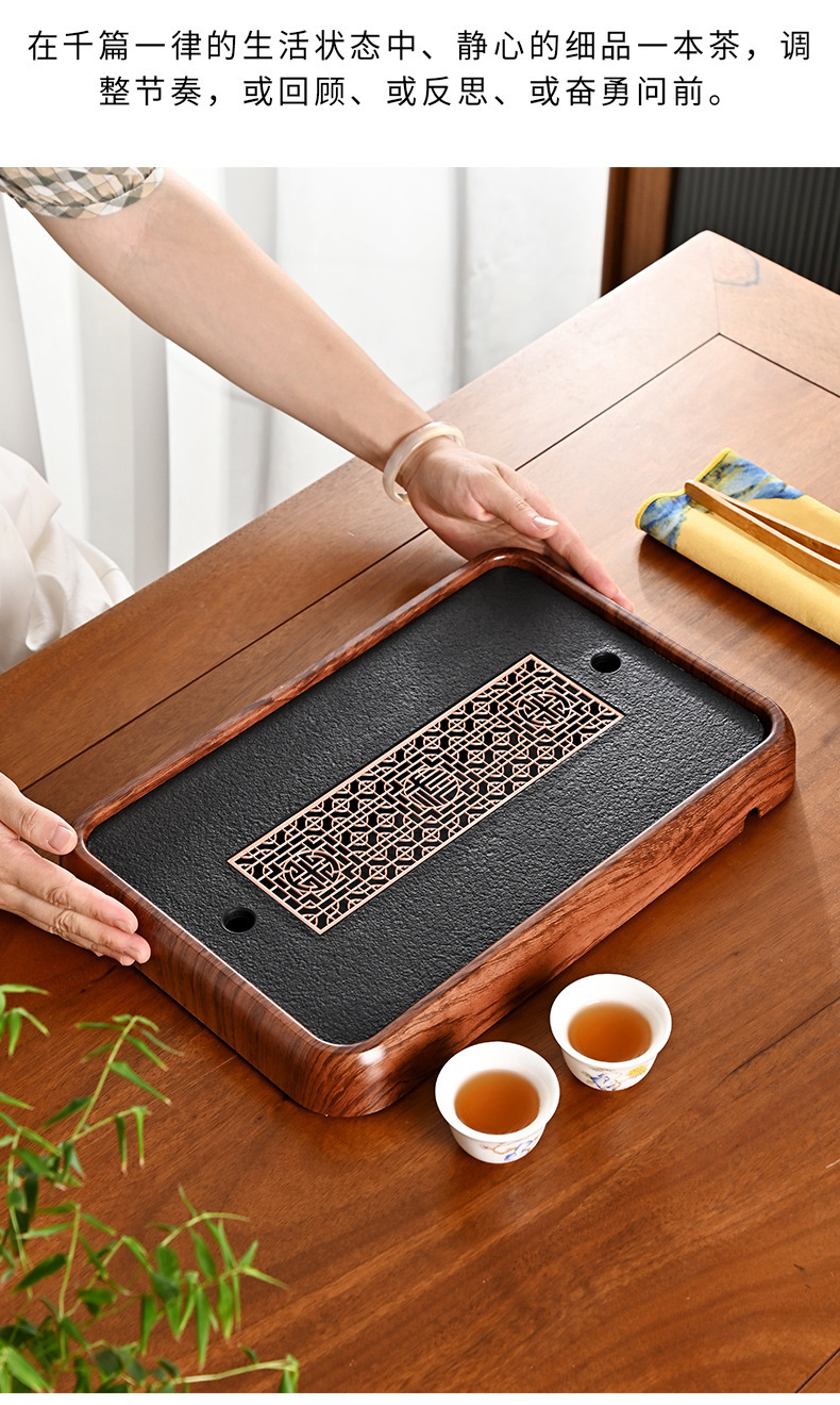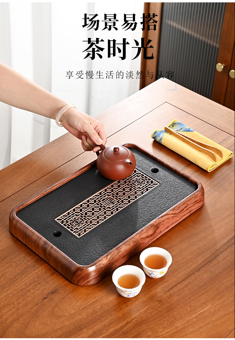 티 트레이, 가정용 차 세트, 차 테이블, 물 저장 및 배수 유형, 모조 검은색 돌 건조 버블 테이블, 가벼운 럭셔리 현대 트레이, 단단한 나무 차스토어 가기