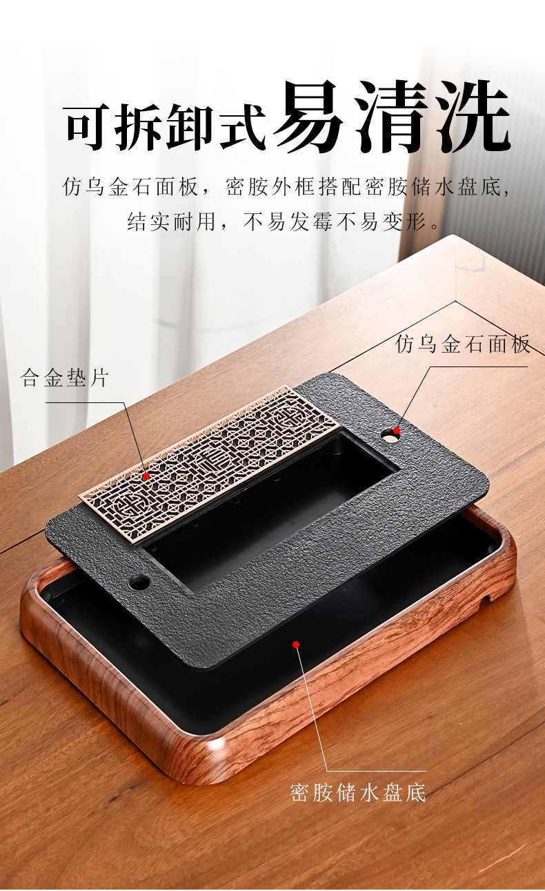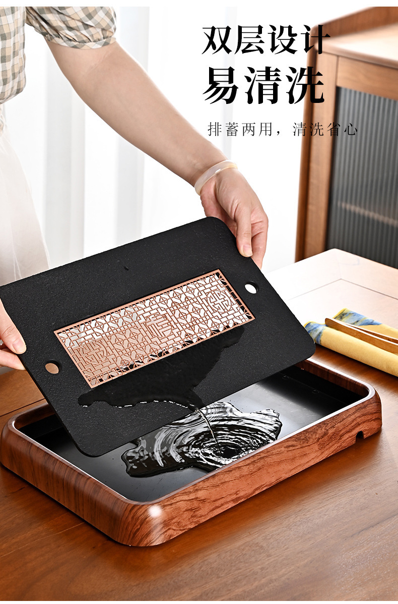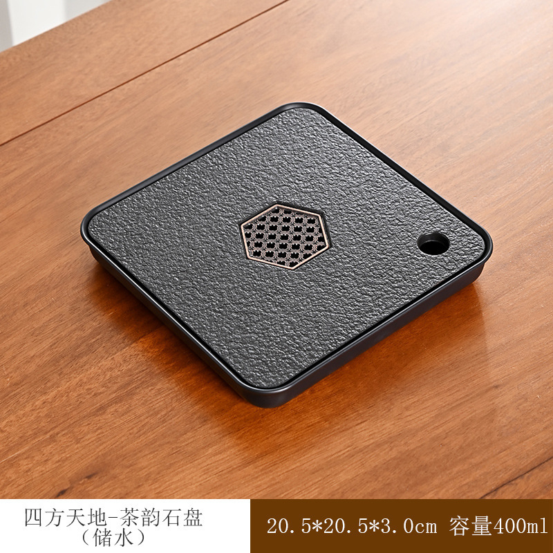 티 트레이, 가정용 차 세트, 차 테이블, 물 저장 및 배수 유형, 모조 검은색 돌 건조 버블 테이블, 가벼운 럭셔리 현대 트레이, 단단한 나무 차
