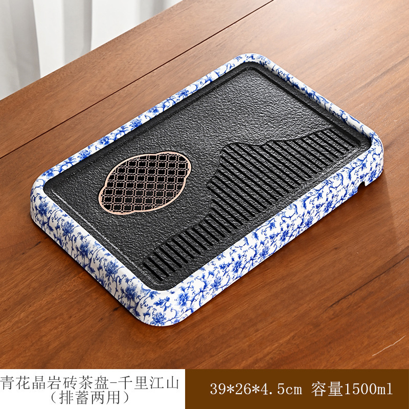• 파란색과 흰색 크리스탈 암석 벽돌 차 트레이 - Qianli Jiangshan(배수 및 저장용 이중 목적)