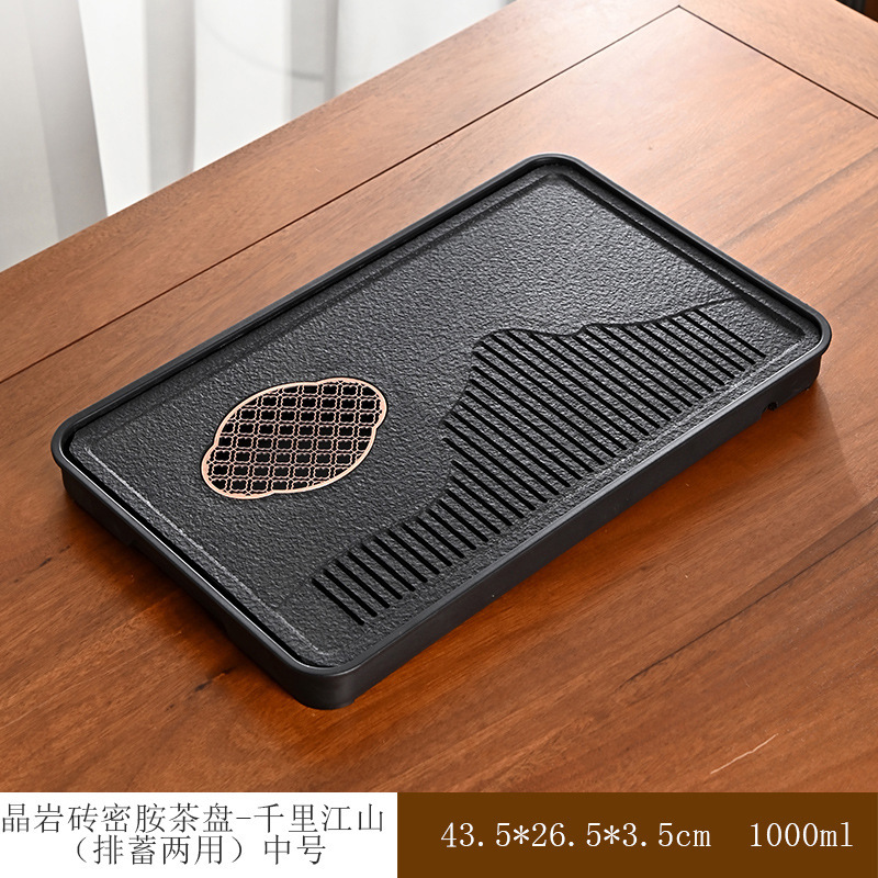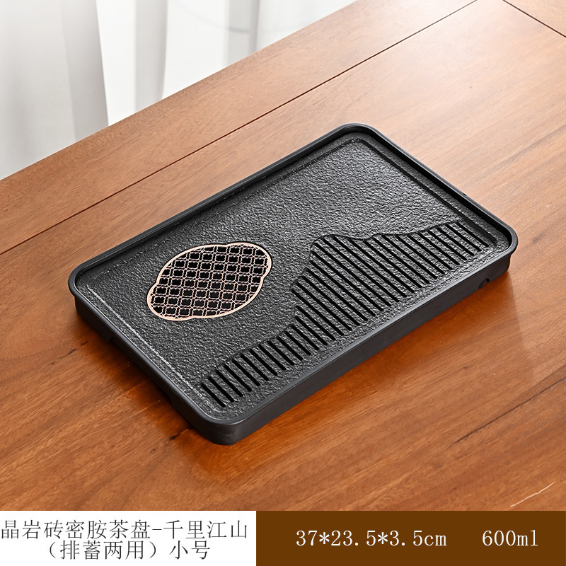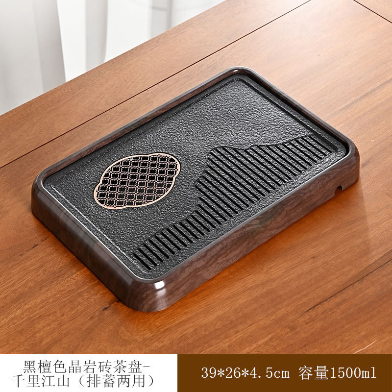 • 흑단 크리스탈 바위 벽돌 차 트레이 - Qianli Jiangshan(보관 및 배수용 이중 목적)