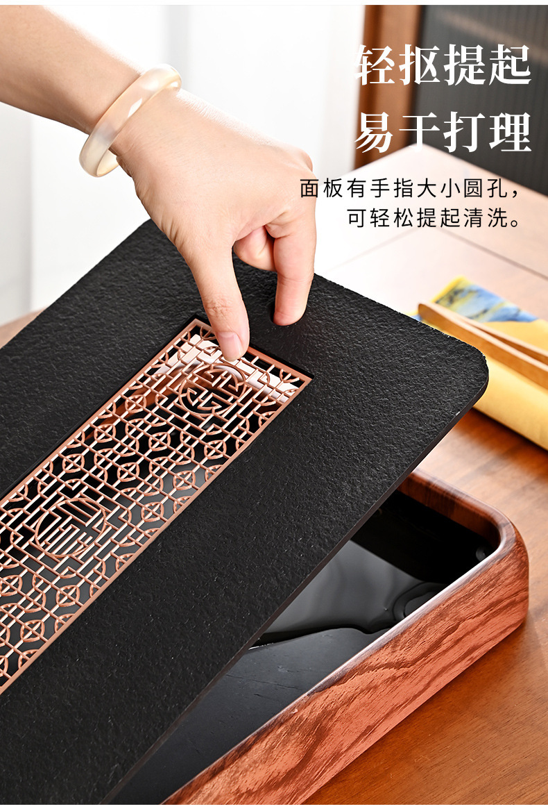 • 천리의 강산을 담은 자단색 크리스탈 바위 벽돌 차 트레이(배수 및 저장 겸용)