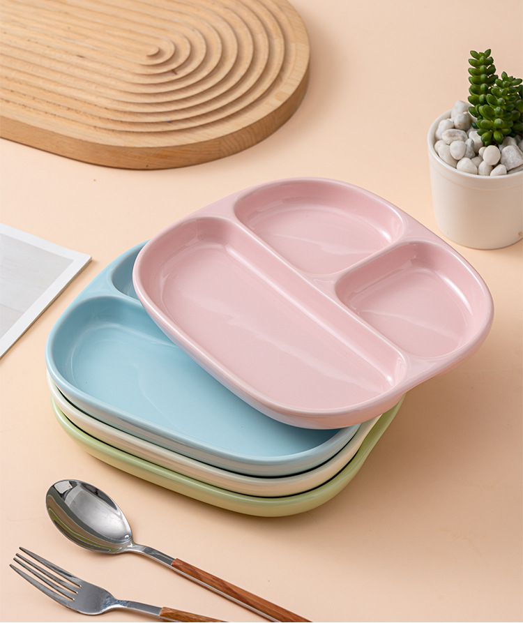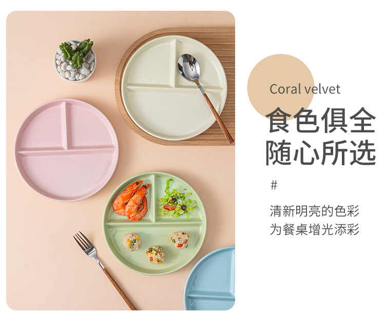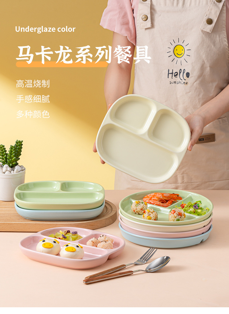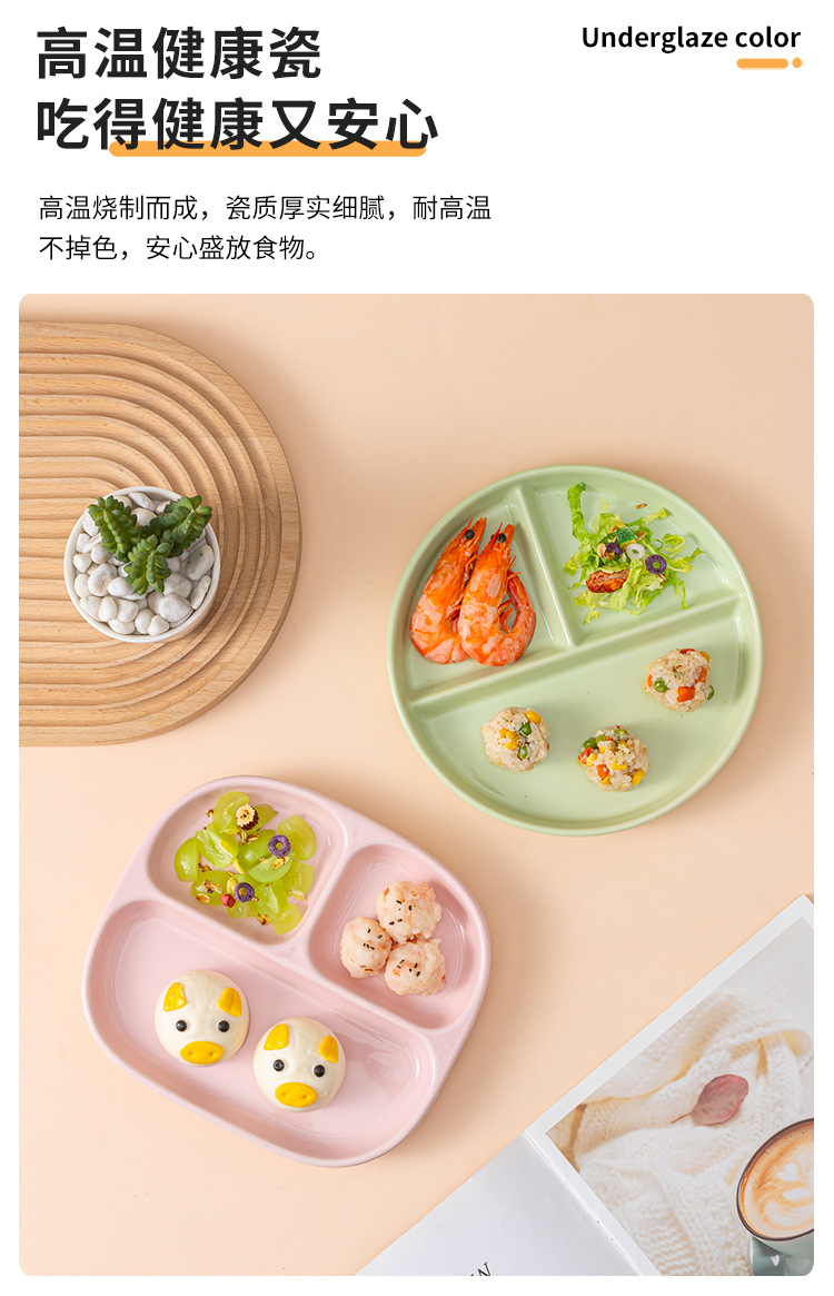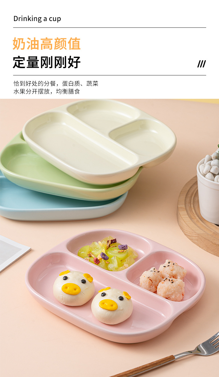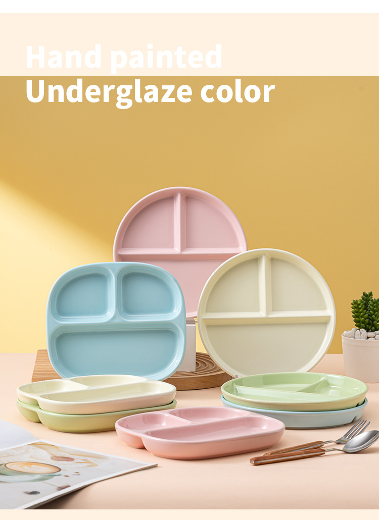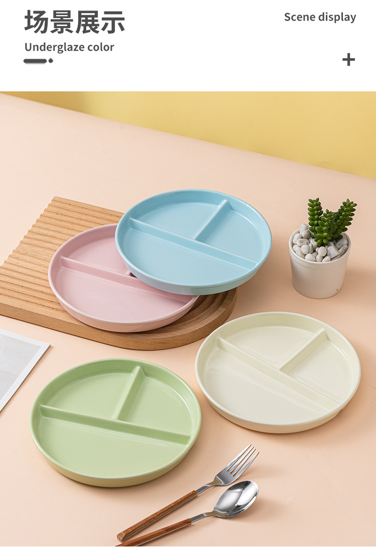 단색 세라믹 분할 디너 플레이트 211 지방 감량 디너 플레이트 어린이 정량 아침 식사 플레이트 식기 가정용 분할 디너 플레이트