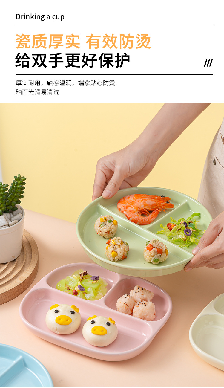 단색 세라믹 분할 디너 플레이트 211 지방 감량 디너 플레이트 어린이 정량 아침 식사 플레이트 식기 가정용 분할 디너 플레이트스토어 가기
