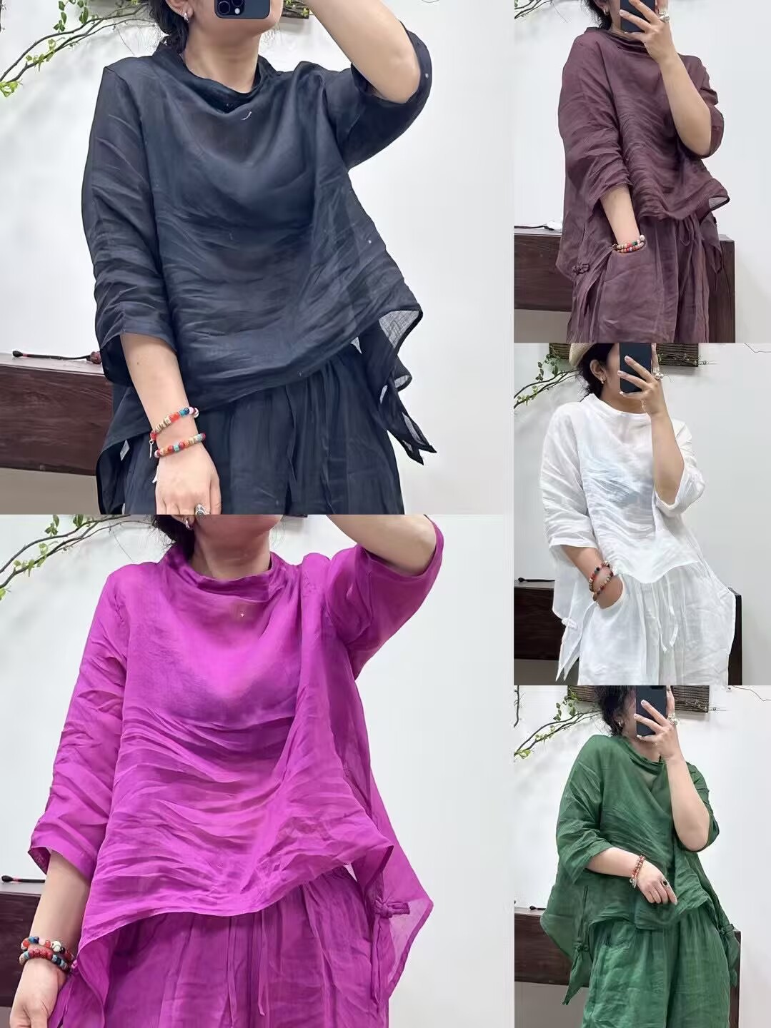 2025 새로운 여름 짧은 모시 셔츠 티셔츠 캐주얼 탑 예술적 복고풍스토어 가기
