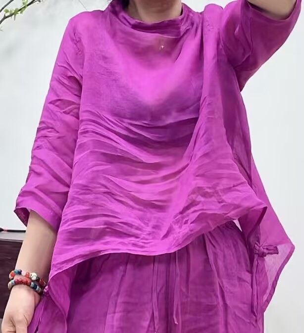 2025 새로운 여름 짧은 모시 셔츠 티셔츠 캐주얼 탑 예술적 복고풍