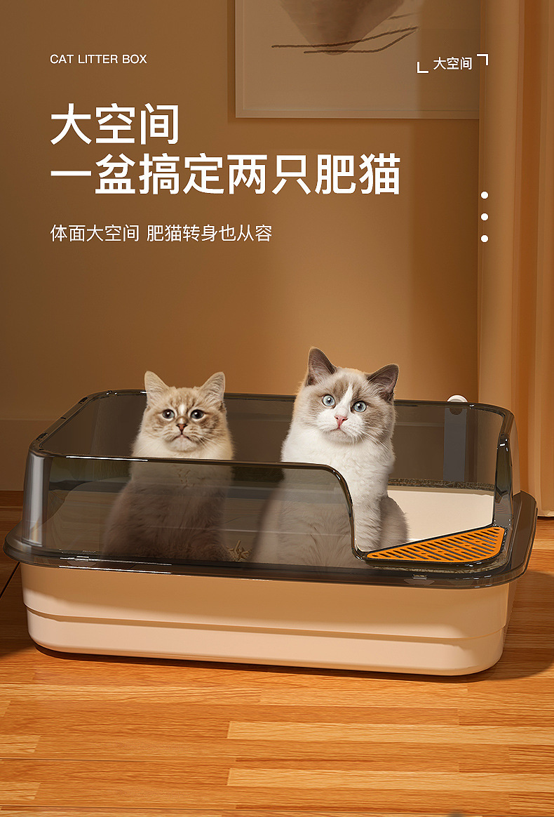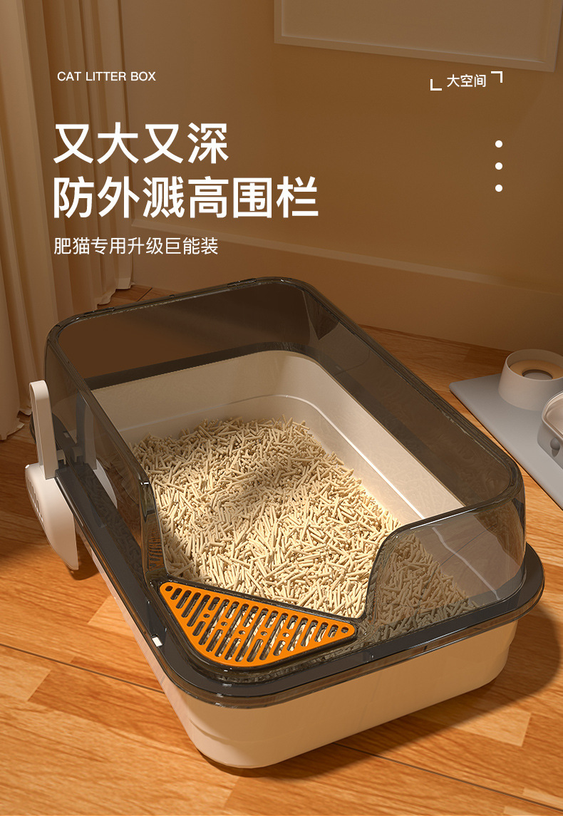超大号猫砂盆猫厕所沙盆特大号防外溅大猫咪砂盘屎盆半封闭猫砂盆