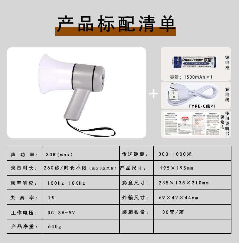 더블 다이아몬드 휴대용 고출력 블루투스 스피커, 노점 판매 및 홍보용 녹음 메가폰, 카드 삽입형 판매용 스피커