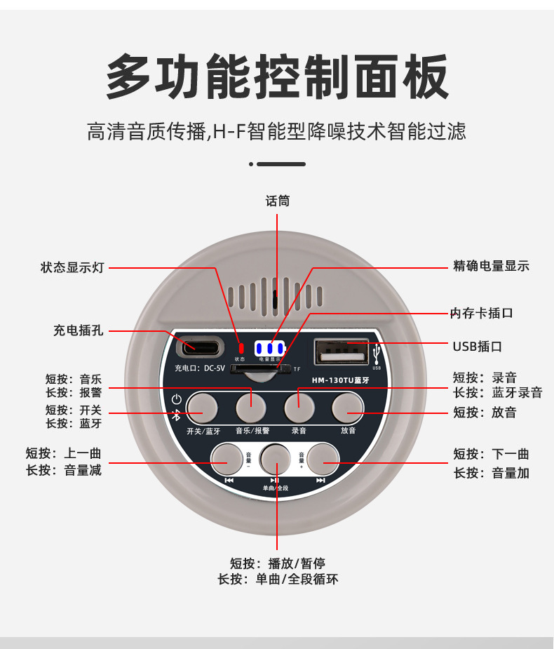 • 블루투스 모델 - TF 카드, U 디스크, 블루투스 재생 지원(리튬 배터리 2개 + 충전 케이블 + 충전기 포함)