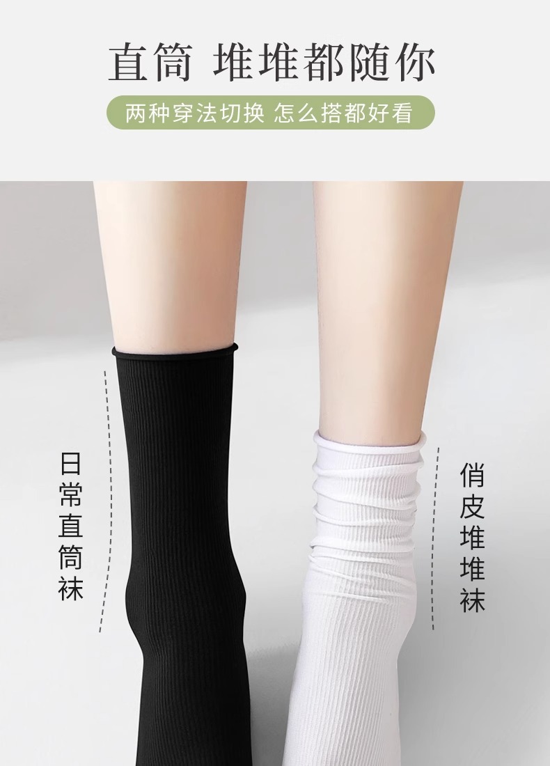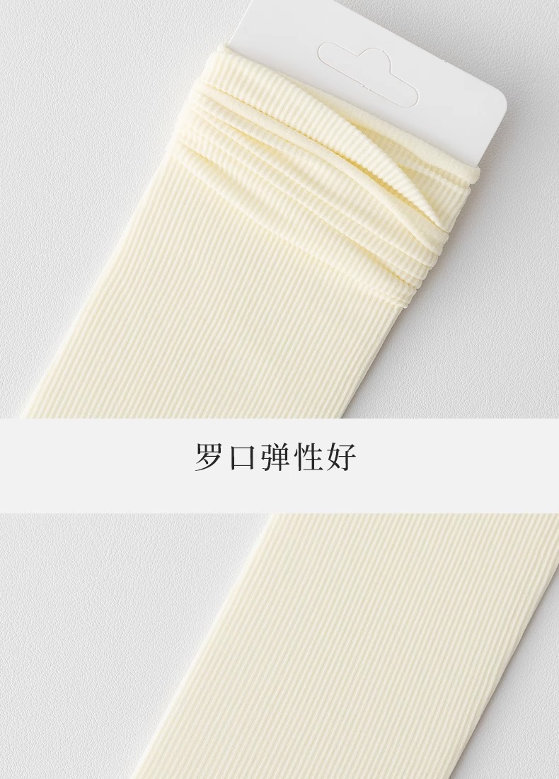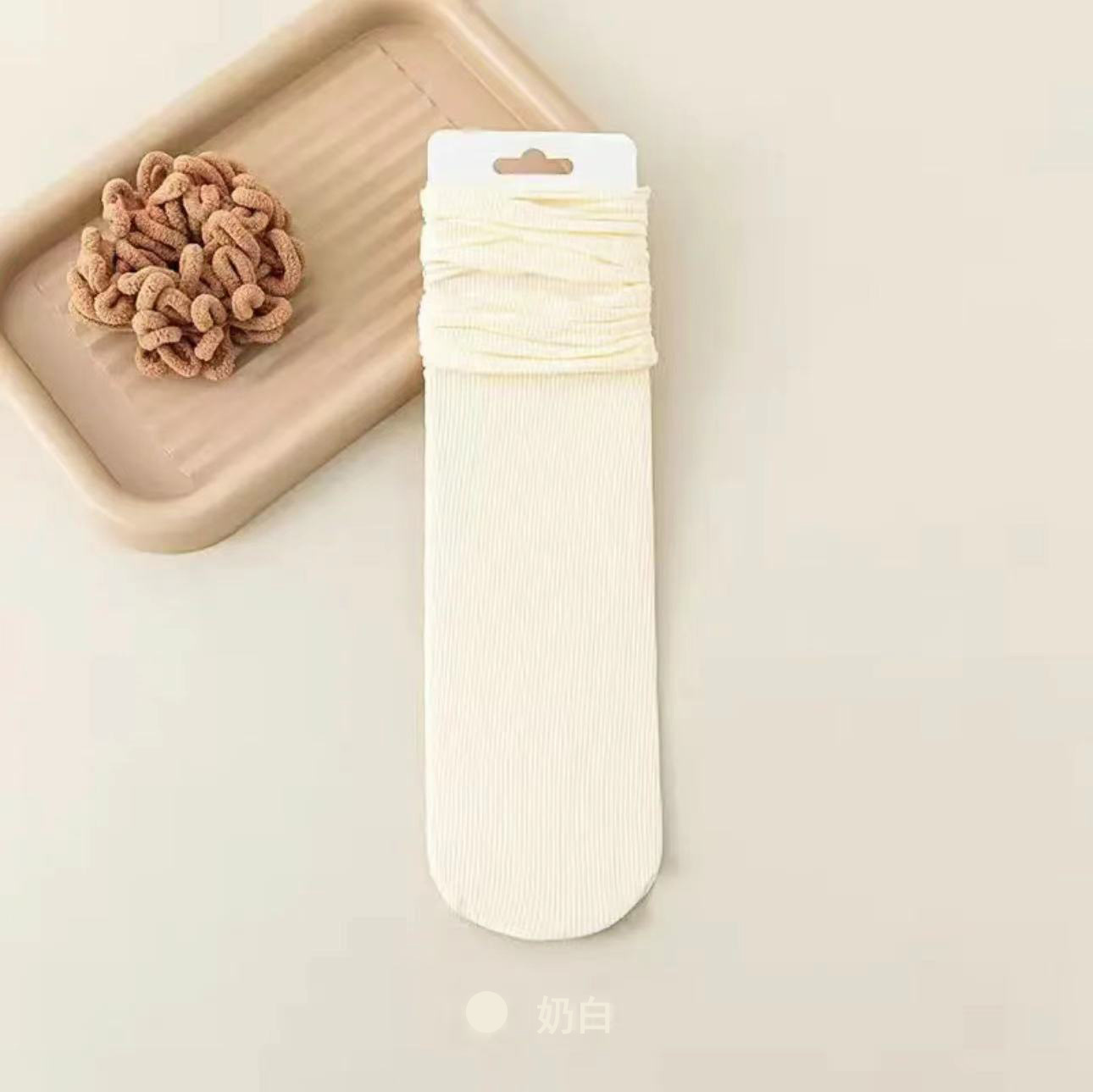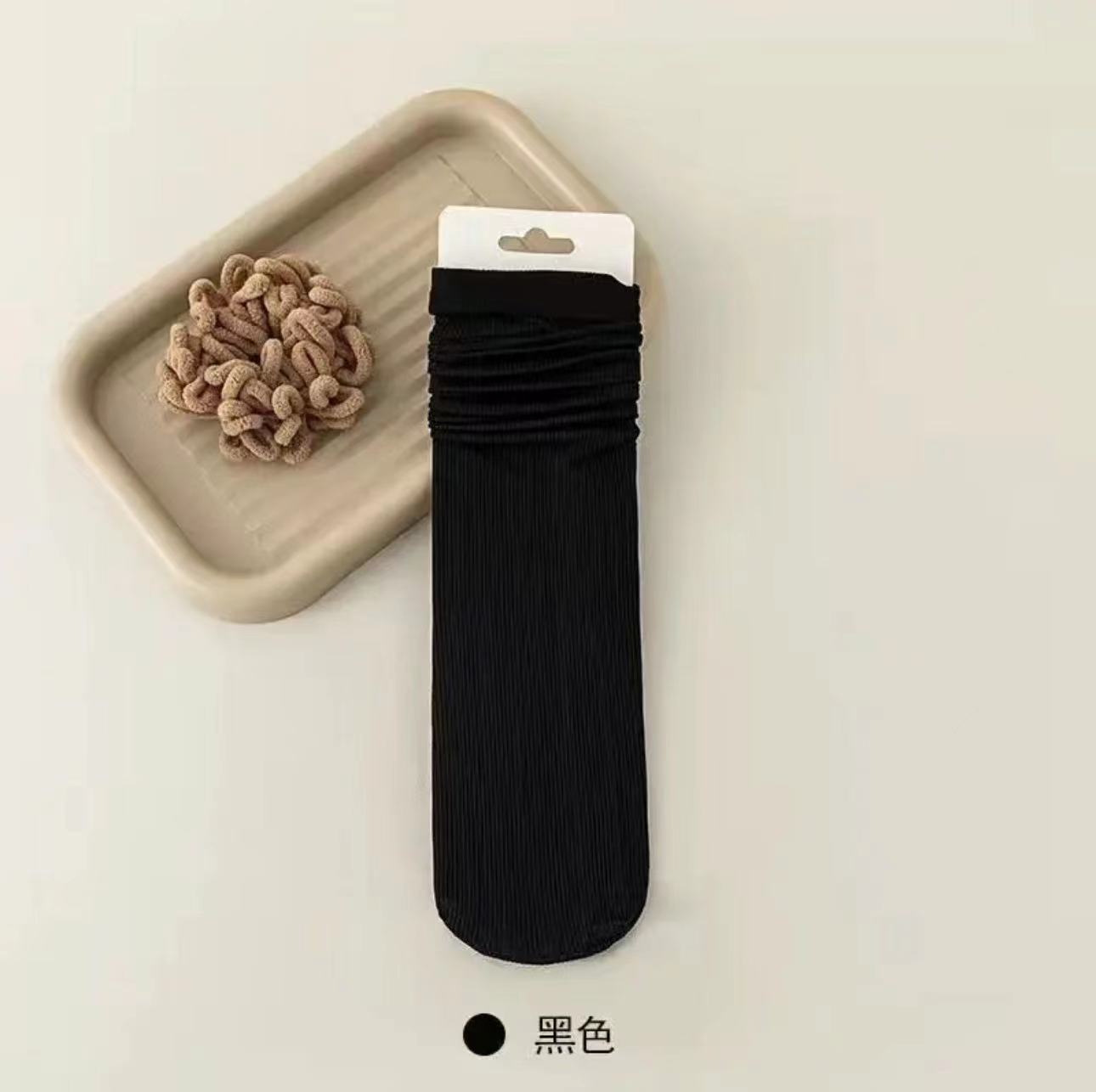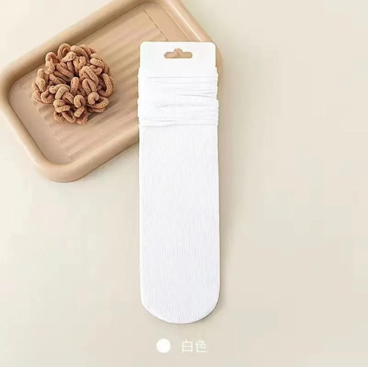 여름용 여성용 단색 파일 양말, 얇은 인 스타일 아이스 실크 일본 아이스 양말, 작은 가죽 신발과 함께 중간 길이 양말