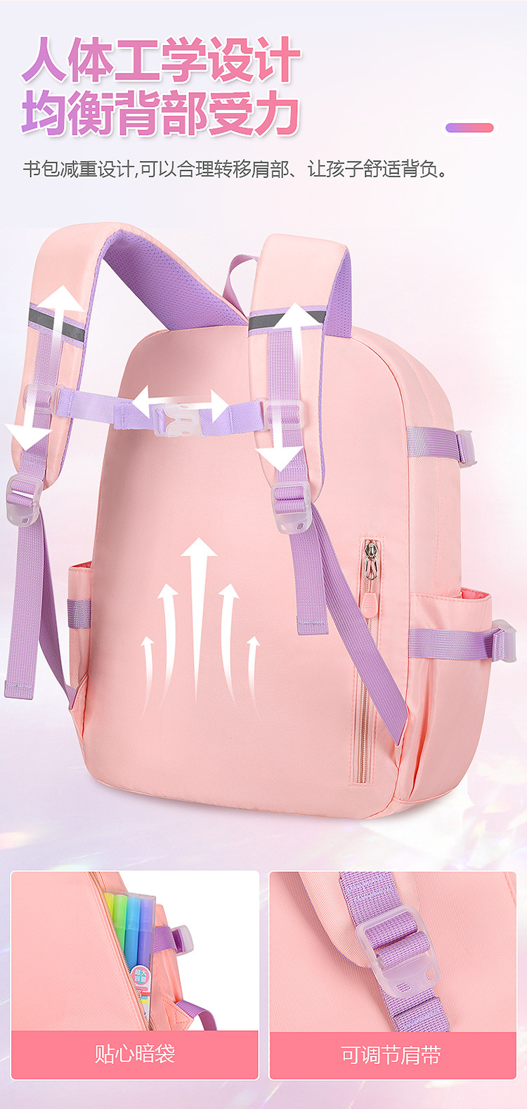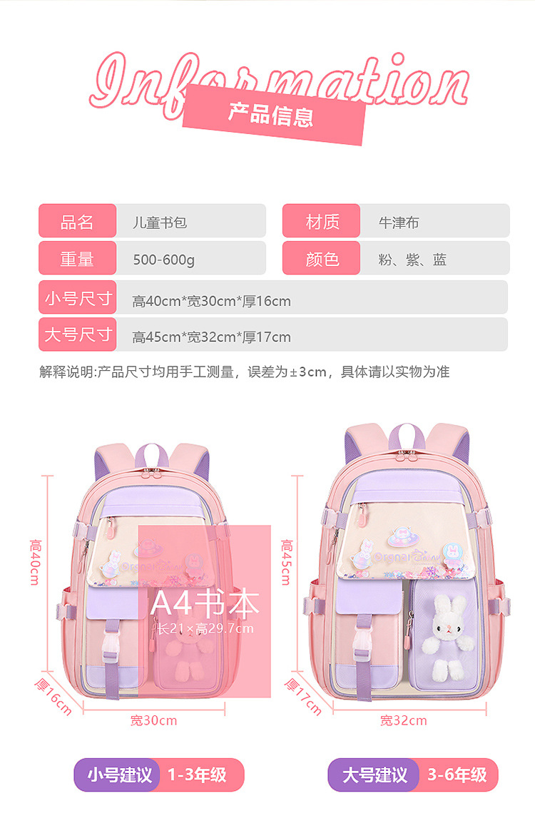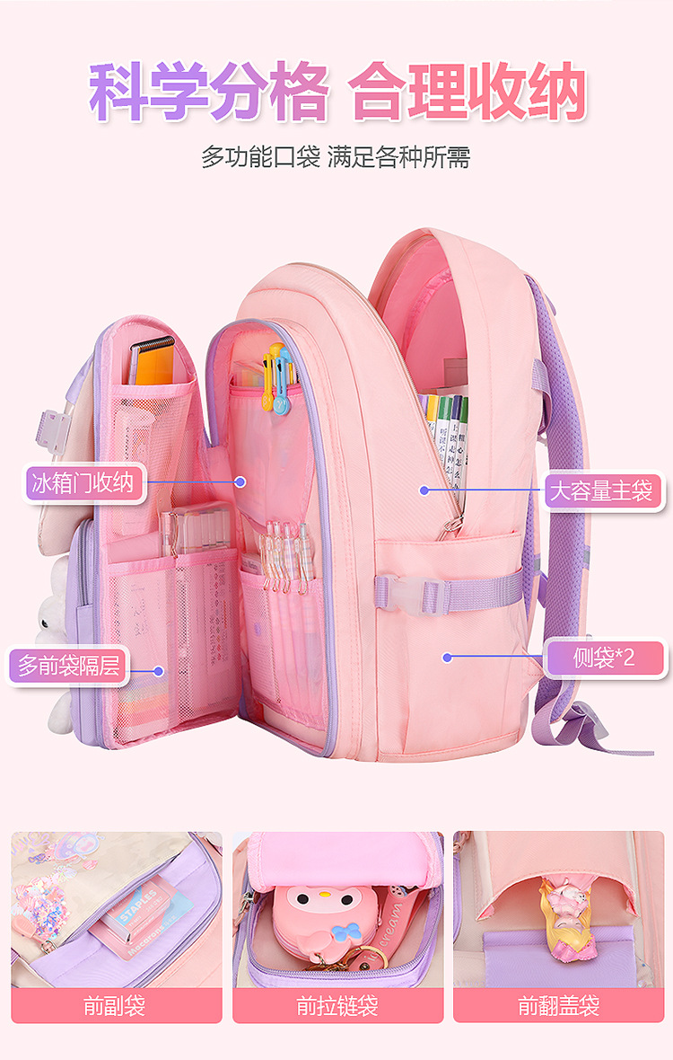 2024 유사 배낭 초등학생 1, 3, 6 학년 귀여운 공주 부담 감소 척추 보호 어린이 학교 가방