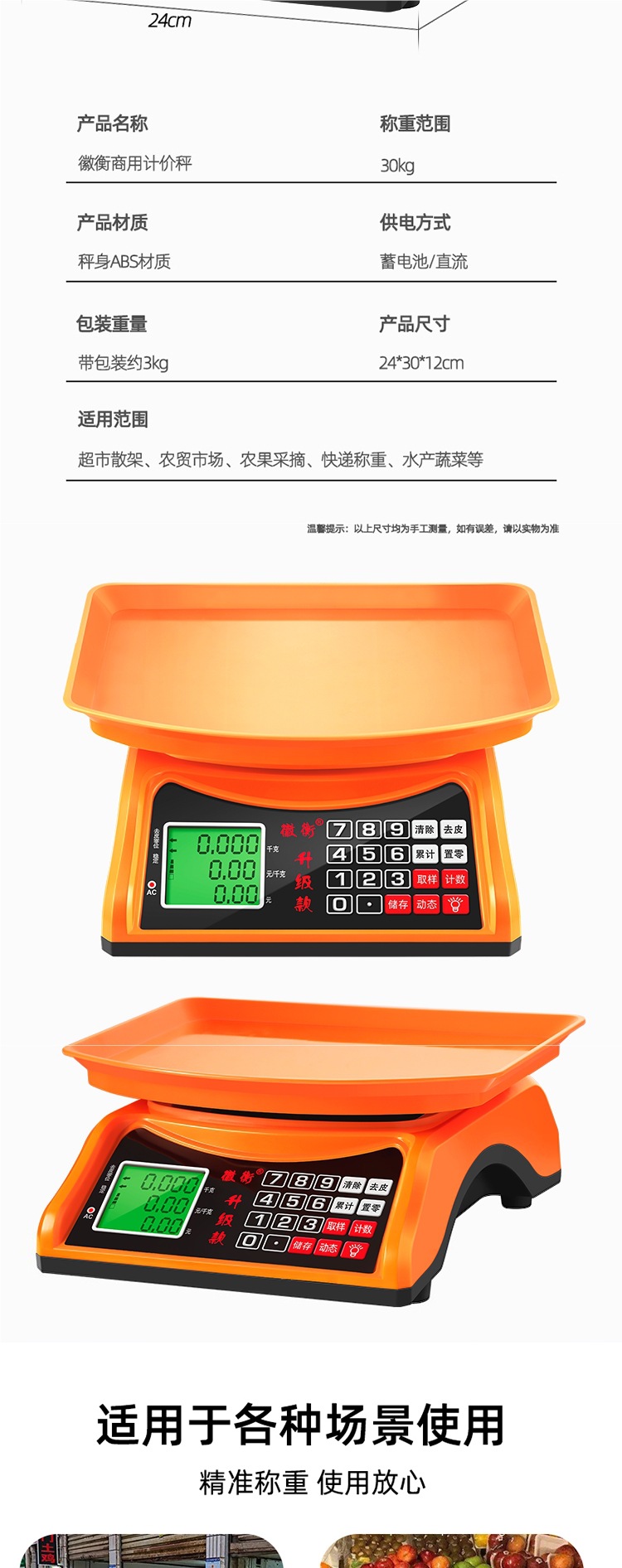 고정밀 올인원 30kg 전자저울, 상업용 소형 가정용 저울, 그램 및 파운드 저울, 야채 판매 및 매점용스토어 가기