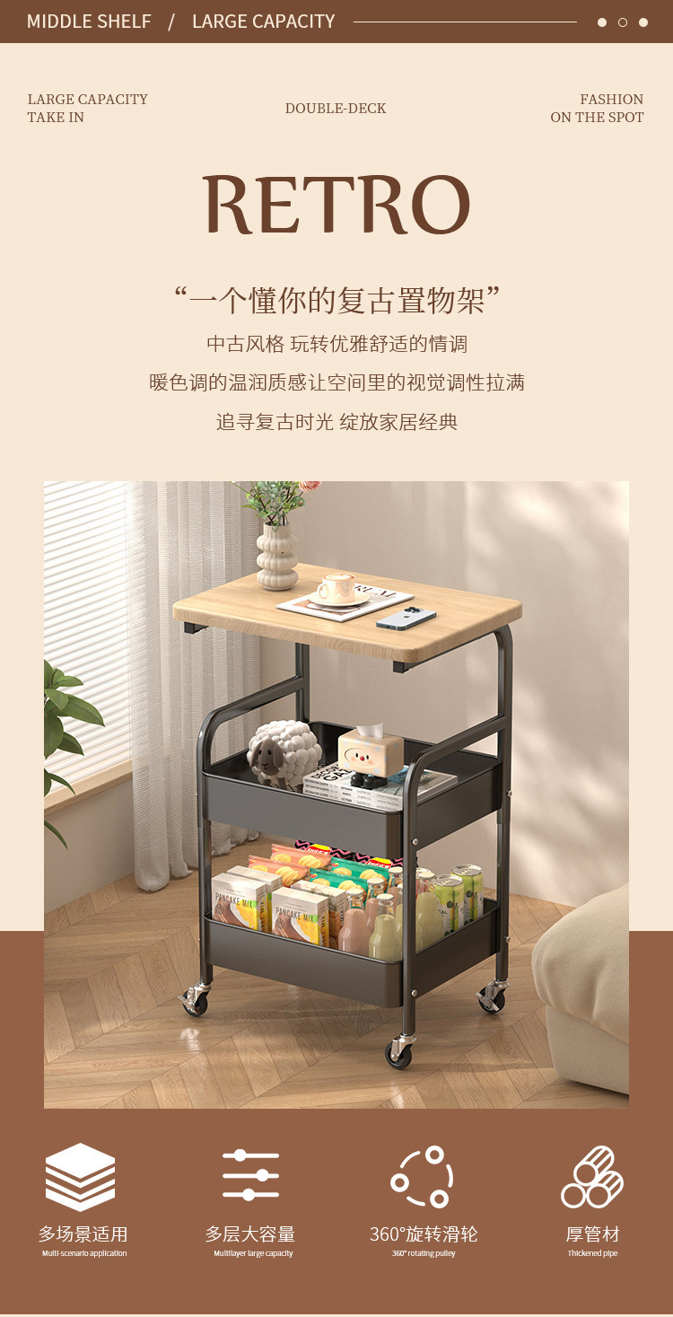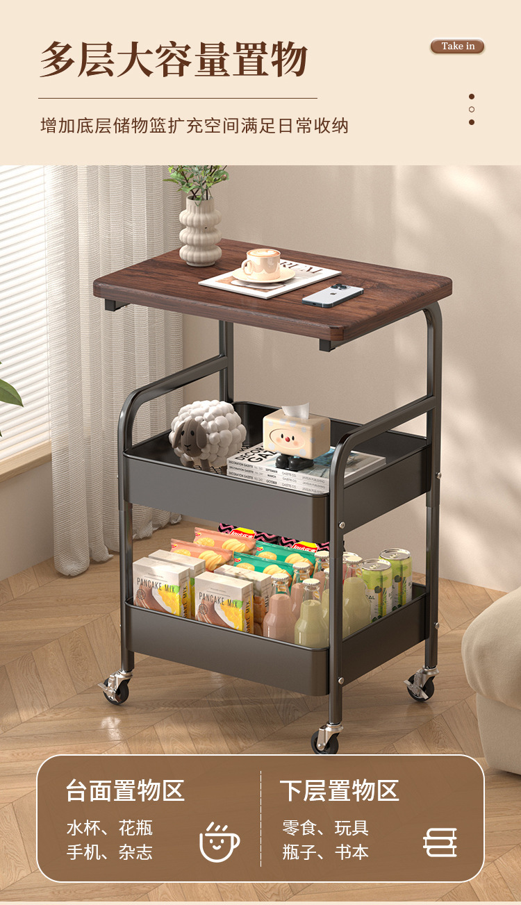 맞춤형 제조업체 이동식 트롤리 보관함 거실 스낵 임대 주택 침대 옆 테이블 데스크탑 보관함 트롤리스토어 가기