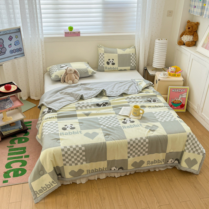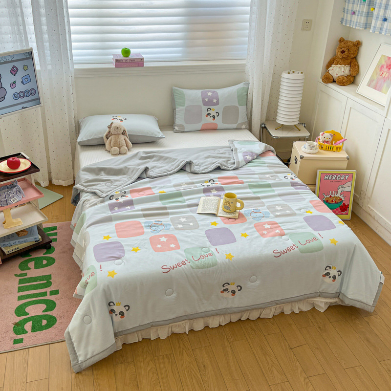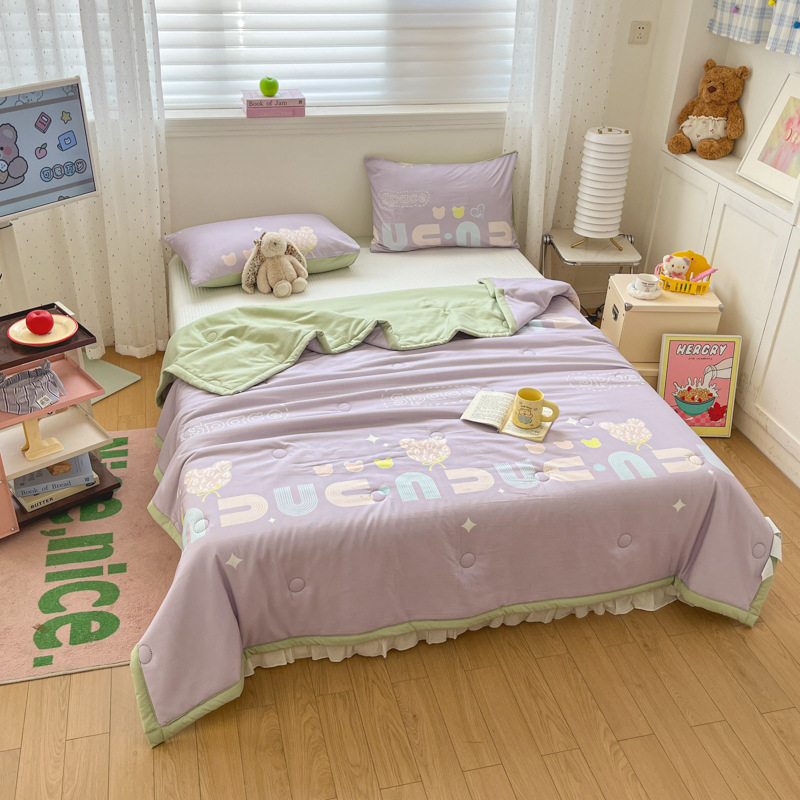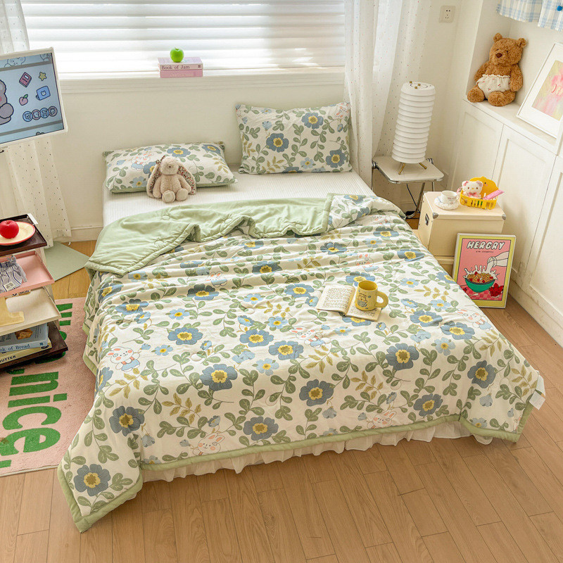 에어컨 이불 여름 시원한 이불 여름 새로운 기능 스타일 기계 세탁 가능한 이불 싱글 및 더블 학생 기숙사 얇은 이불 3 피스 세트스토어 가기
