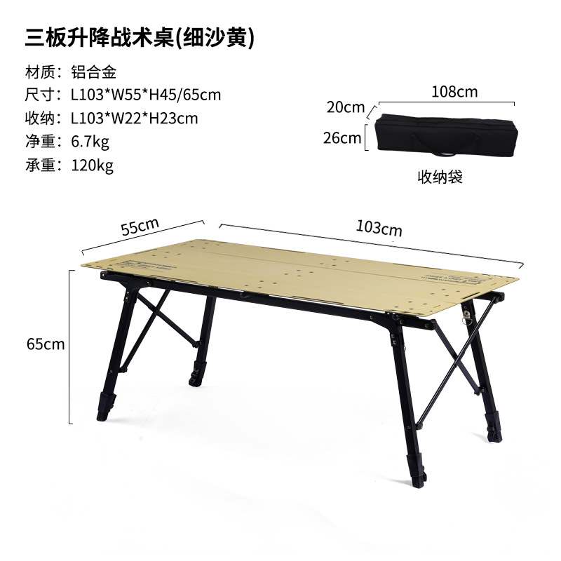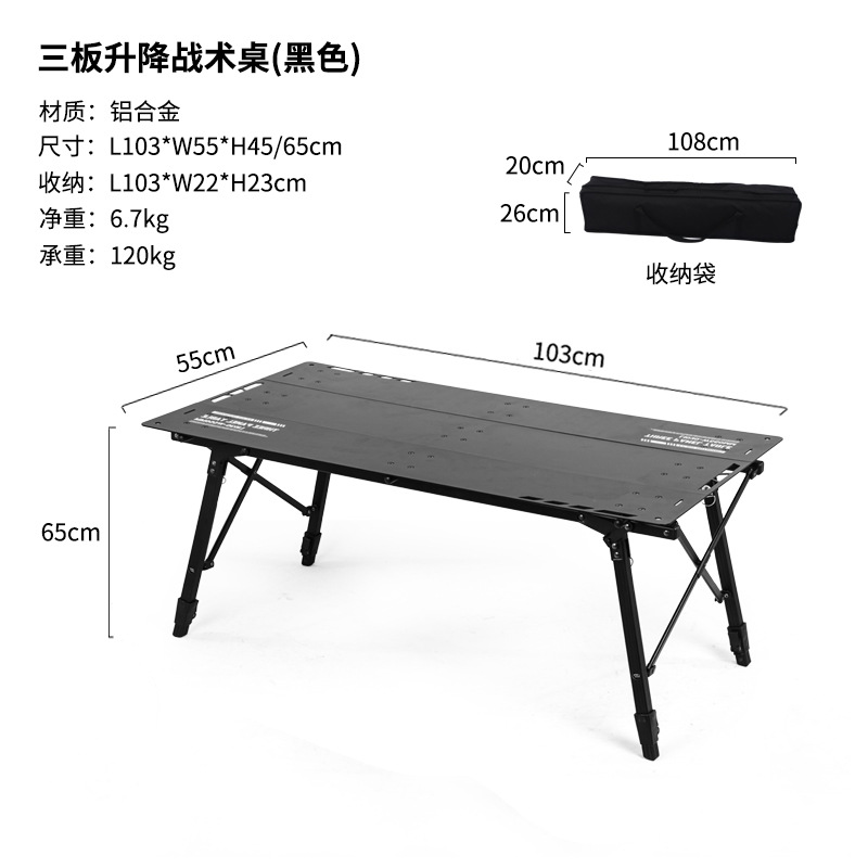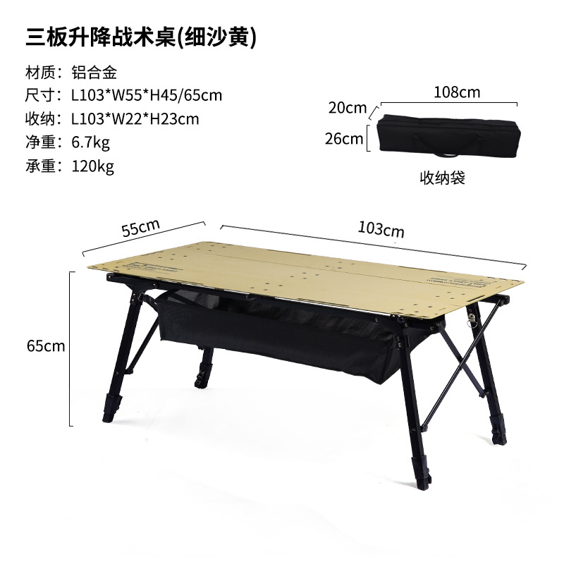 야외 휴대용 피크닉 캠핑 접이식 테이블 3 피스 알루미늄 플레이트 조정 가능한 리프팅 전술 테이블 및 의자 세트 장비스토어 가기