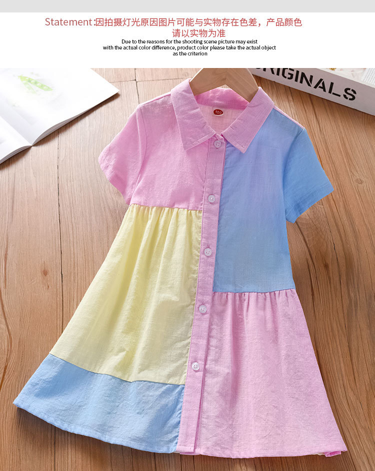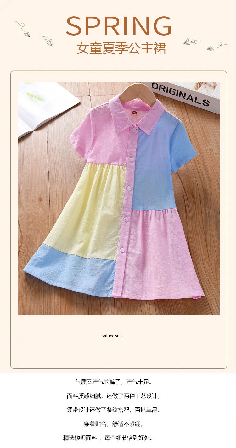 여자 여름 캐주얼 드레스 2025 새로운 어린이 유행 셔츠 스커트 여자 한국 스타일 공주 드레스