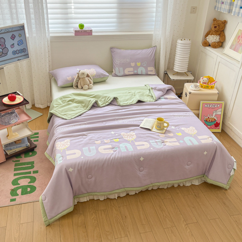 여름 내부 스타일 피부 친화적 인 여름 쿨 퀼트 학생 기숙사 에어컨 낮잠 여름 이불 여름 싱글 얇은 이불 코어 3 피스 세트