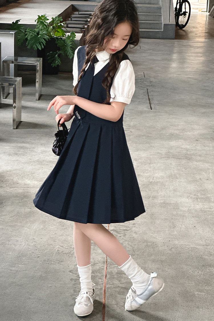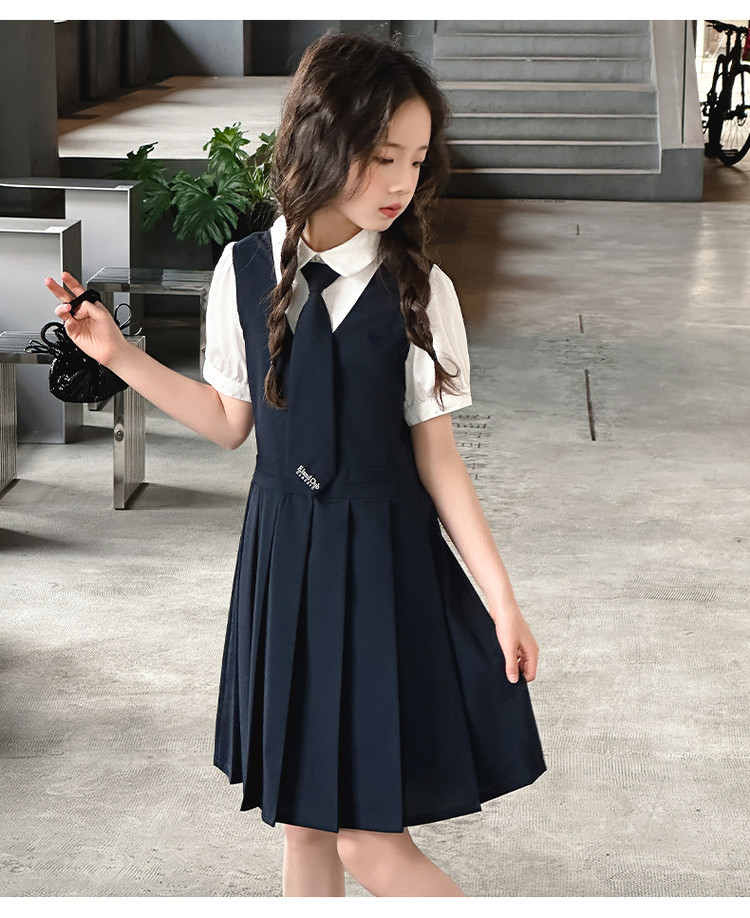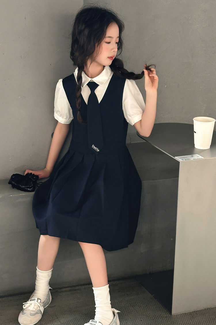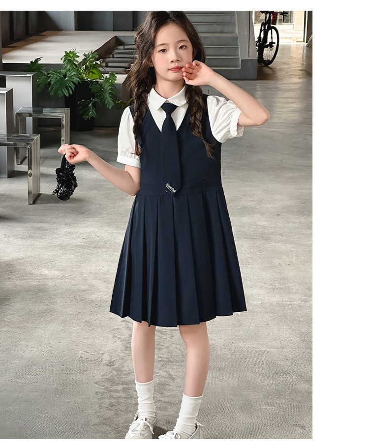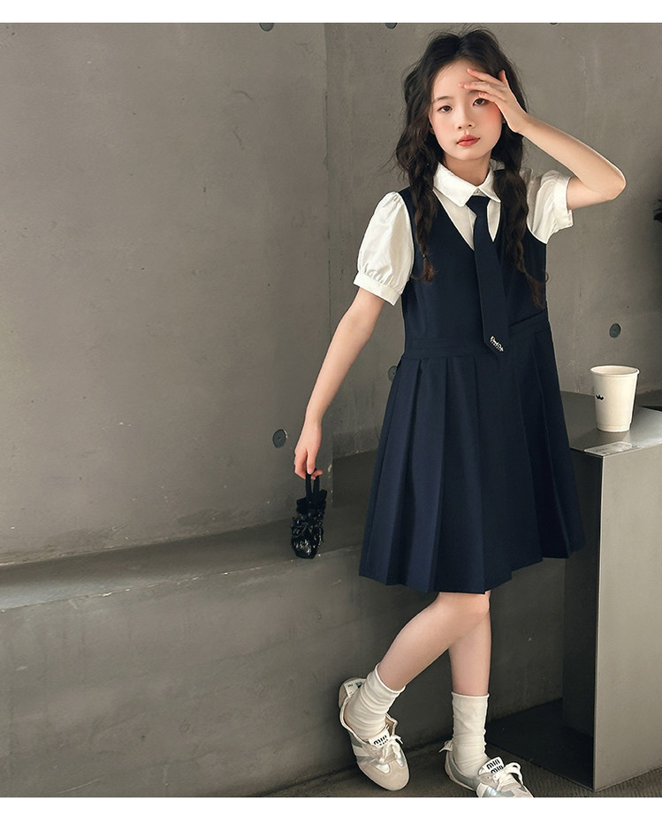 여자 대학 스타일 주름 드레스 2025 새로운 중대형 어린이 여름 스커트 어린이 여름 공주 드레스 JK 스커트스토어 가기