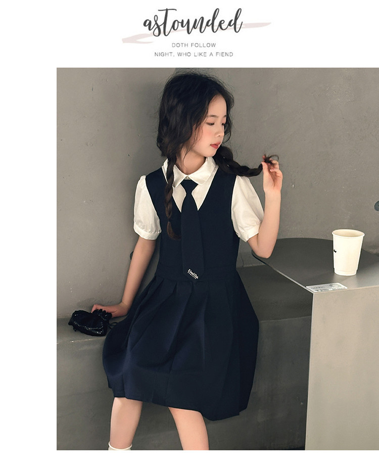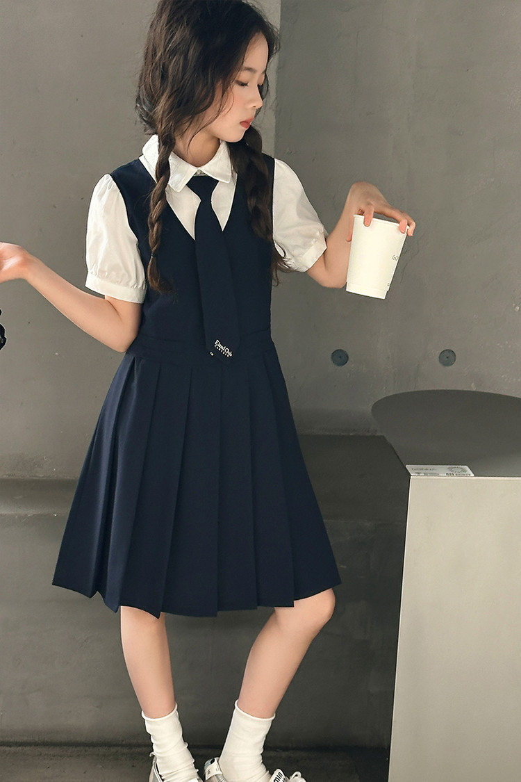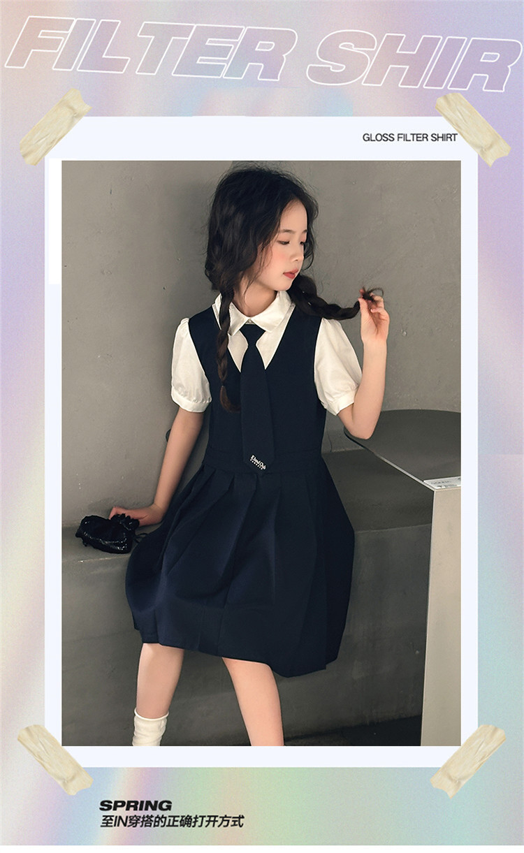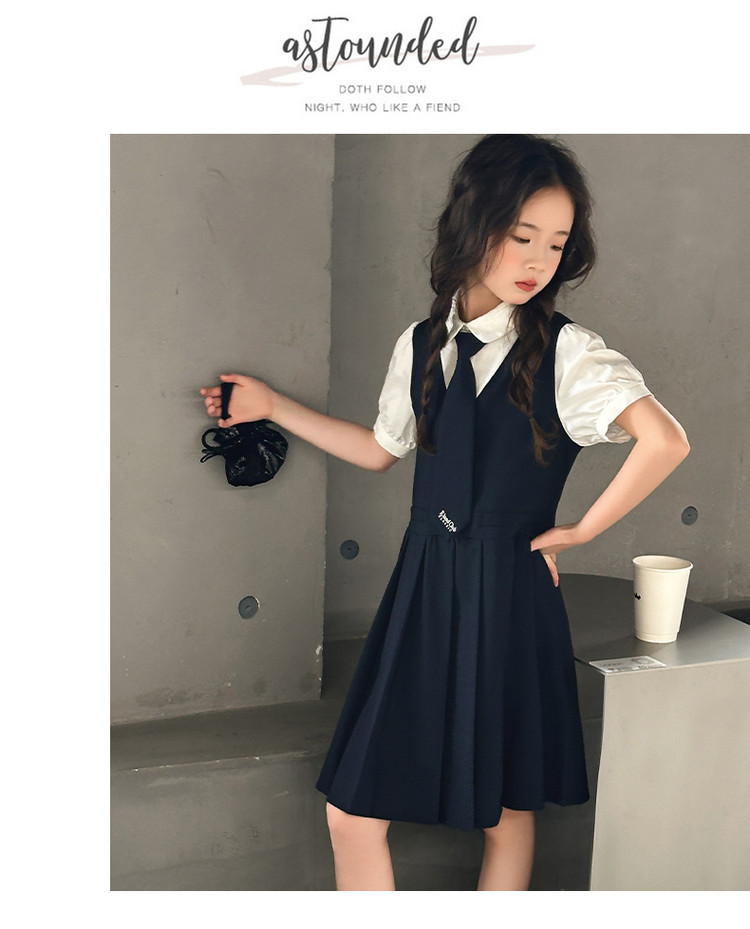 여자 대학 스타일 주름 드레스 2025 새로운 중대형 어린이 여름 스커트 어린이 여름 공주 드레스 JK 스커트스토어 가기