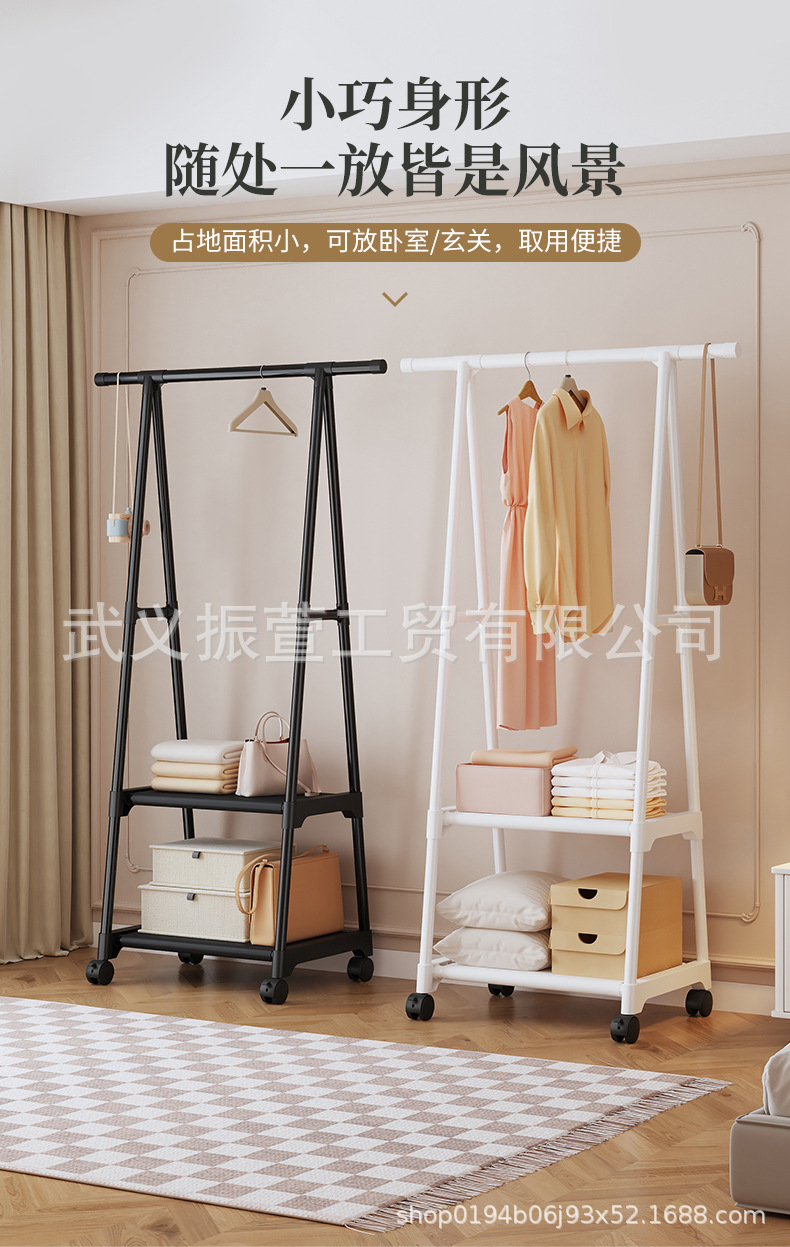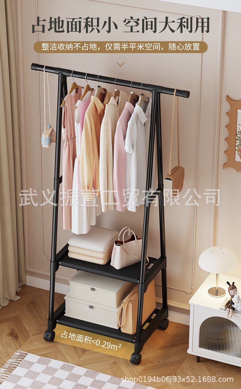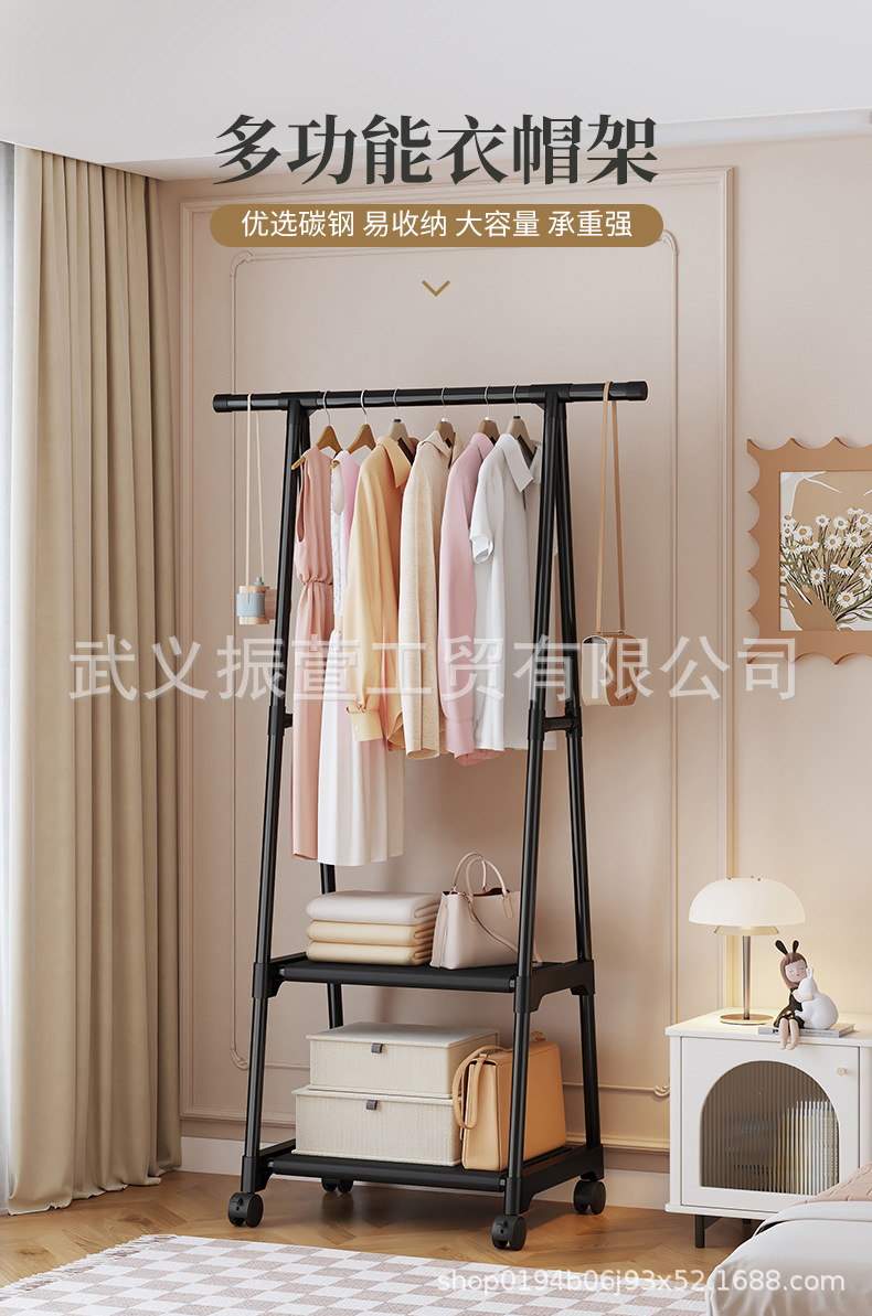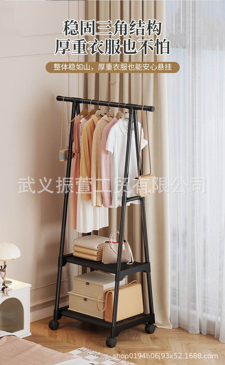 간단한 바퀴 움직이는 삼각형 코트 랙 움직일 수있는 바닥 다층 걸이 건조 랙 가정용 침실 보관 랙