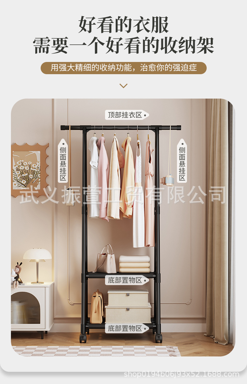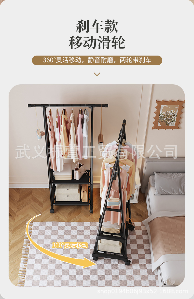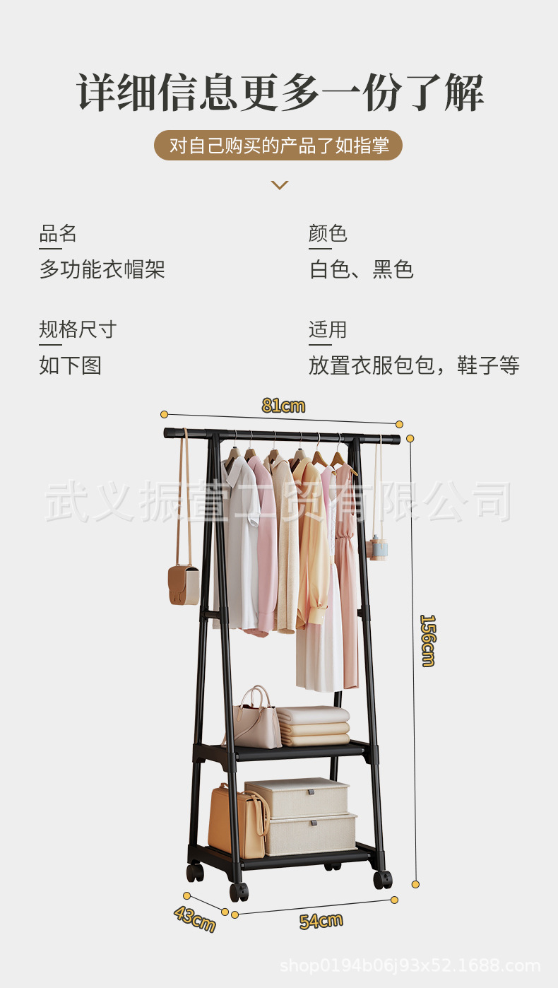 간단한 바퀴 움직이는 삼각형 코트 랙 움직일 수있는 바닥 다층 걸이 건조 랙 가정용 침실 보관 랙