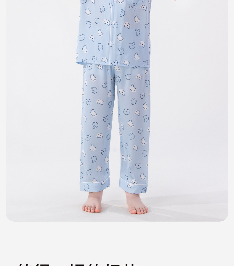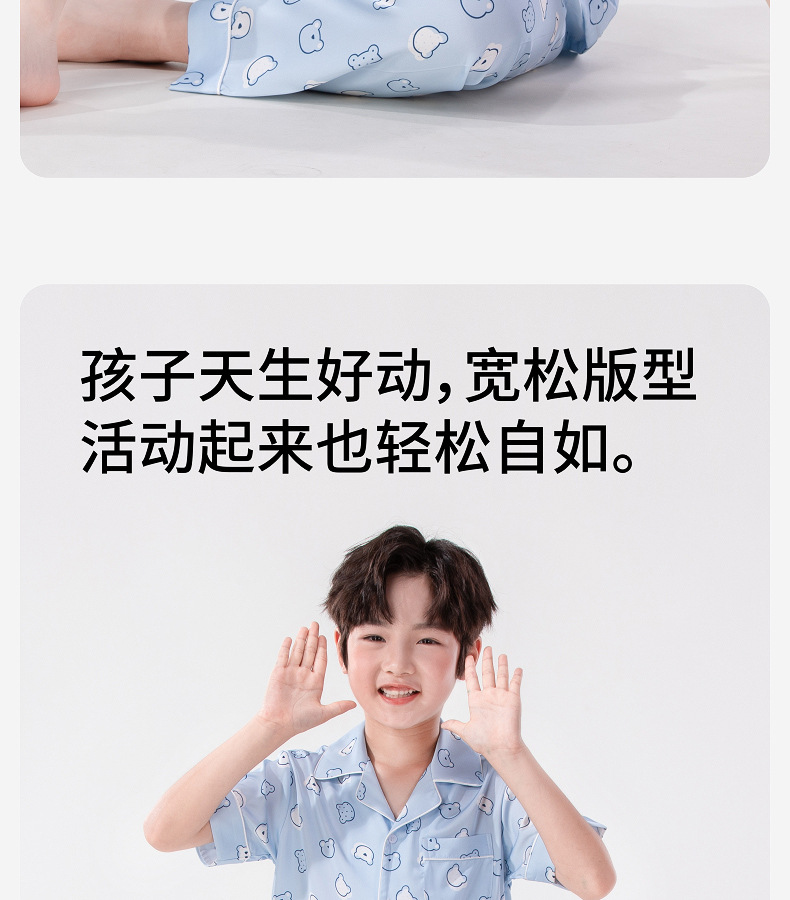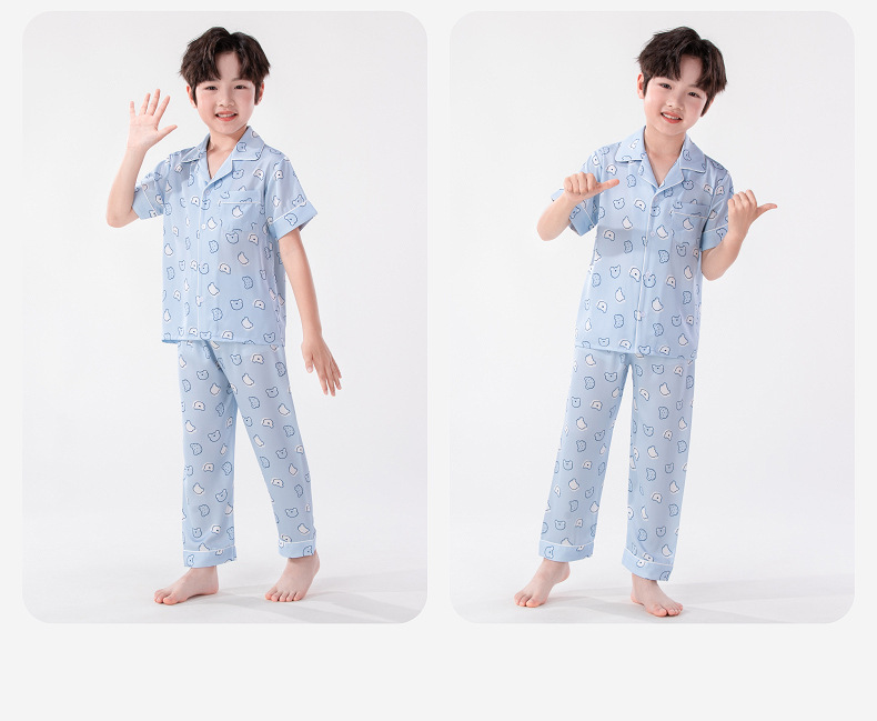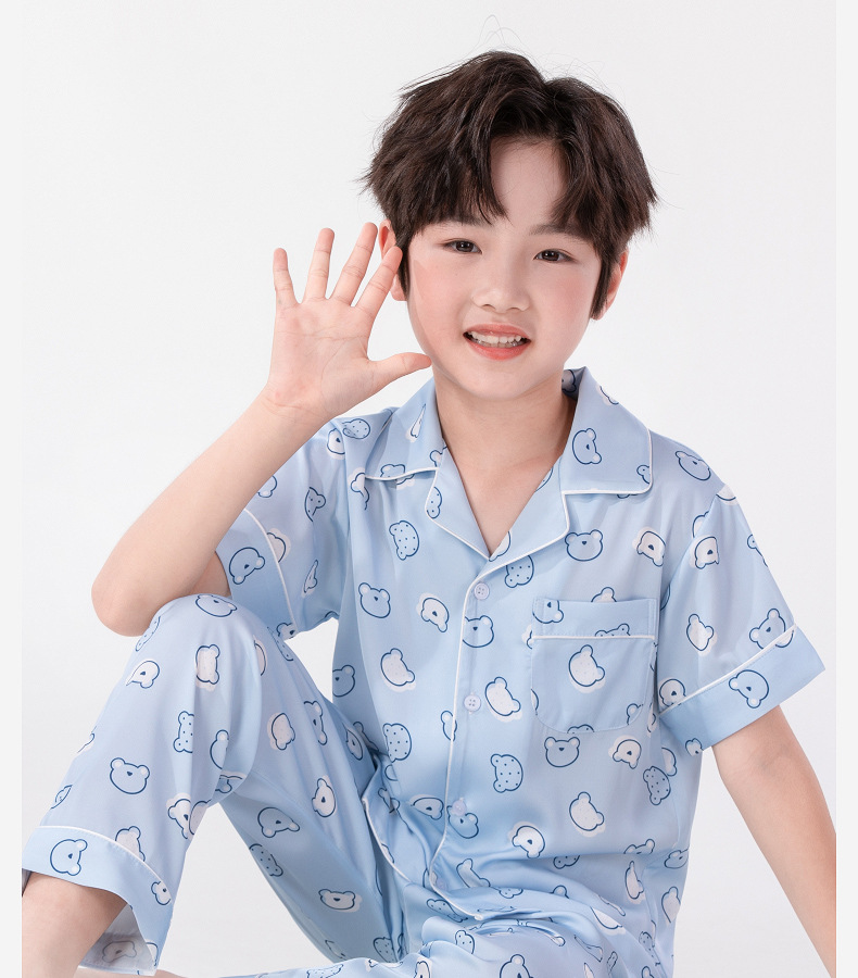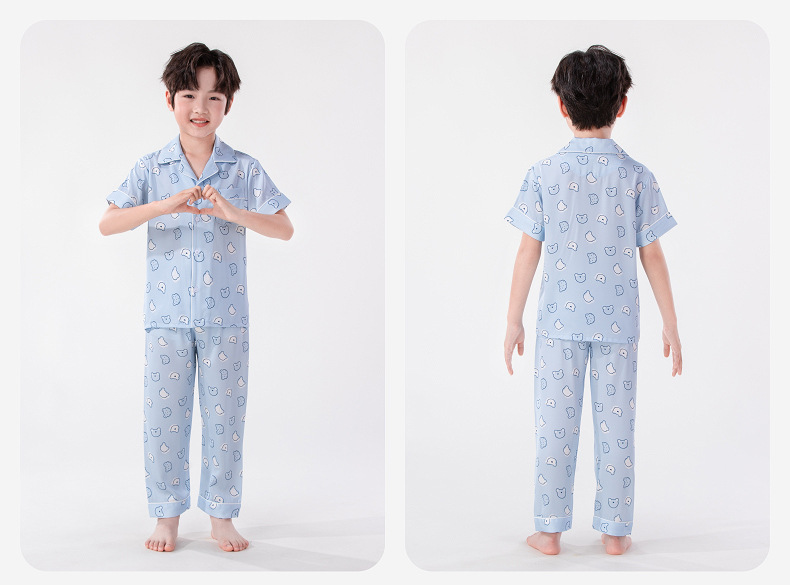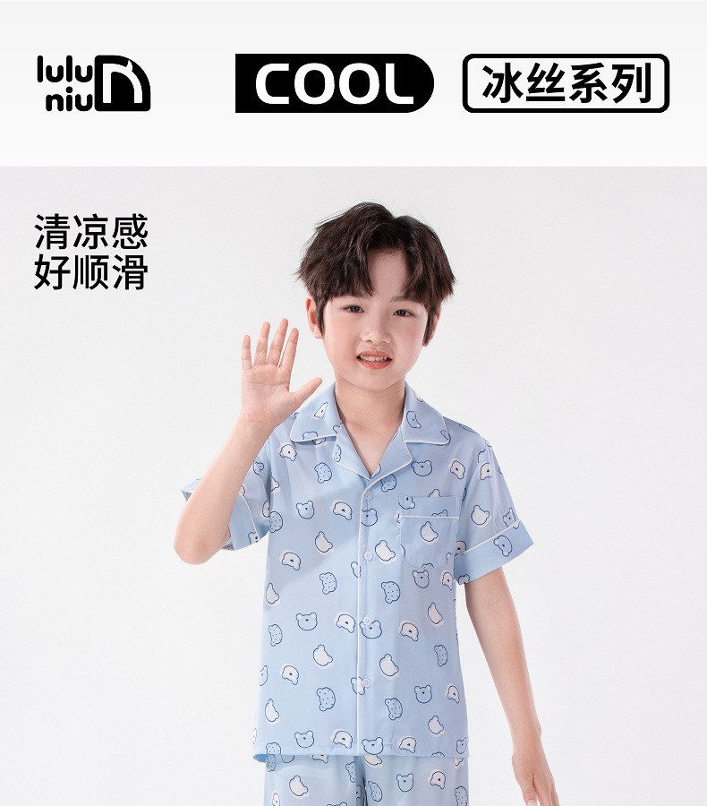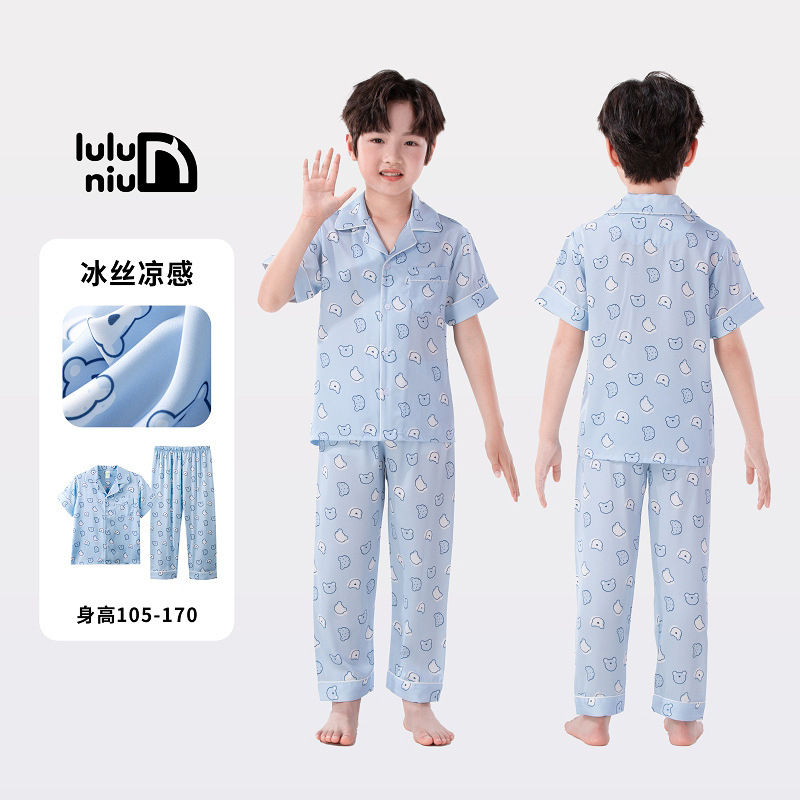 Luluniu 어린이 얼음 실크 잠옷 소년 여름 얇은 반팔 바지 정장 소년과 어린이 실크 가정 의류스토어 가기