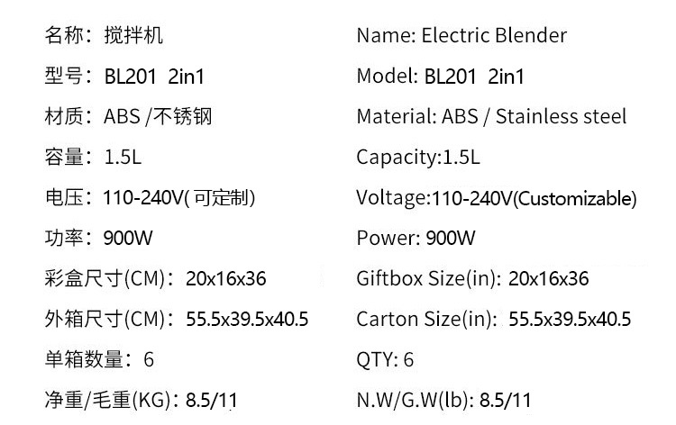 • BL201 다른 특별한 사용자 정의가 필요한 경우 고객 서비스에 문의하십시오.