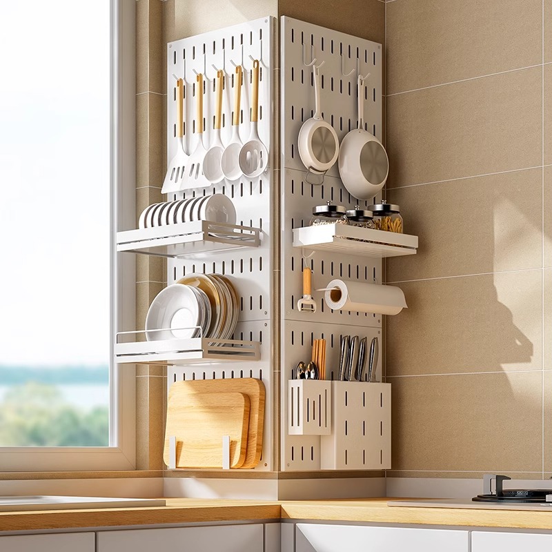 구멍없는 구멍판 주방수납선반, 양념선반, 벽걸이형 칼걸이, 접시걸이, 식기걸이, 수납용품, 스테인레스 스틸