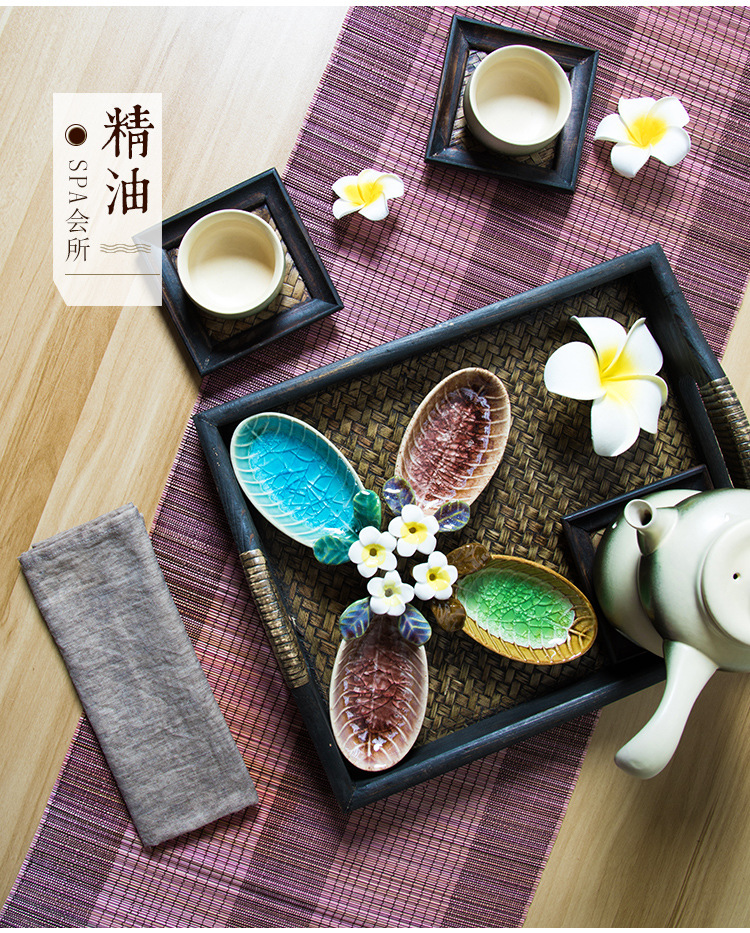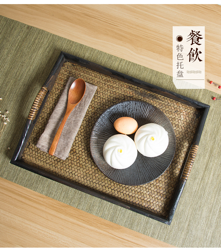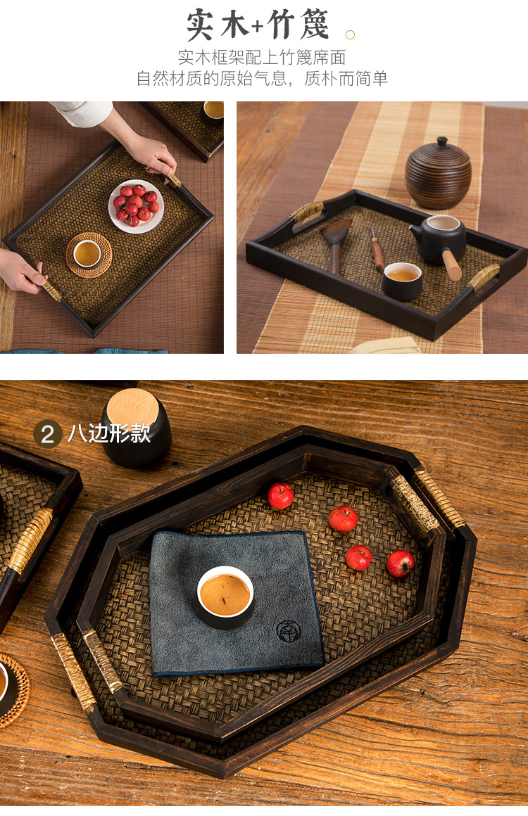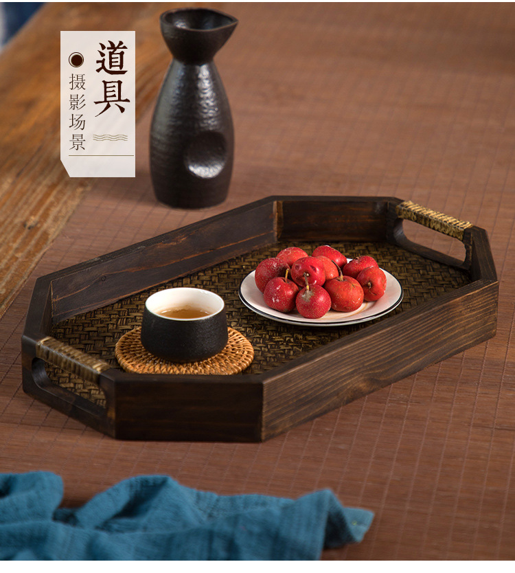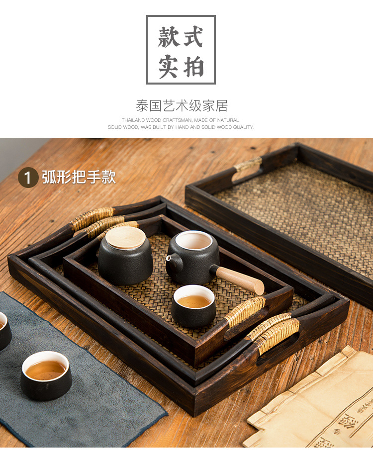 일본식 나무 접시 등나무 트레이 태국식 단단한 나무 미용실 차 트레이 복고풍 중국식 가정용 찻잔 받침 B&스토어 가기