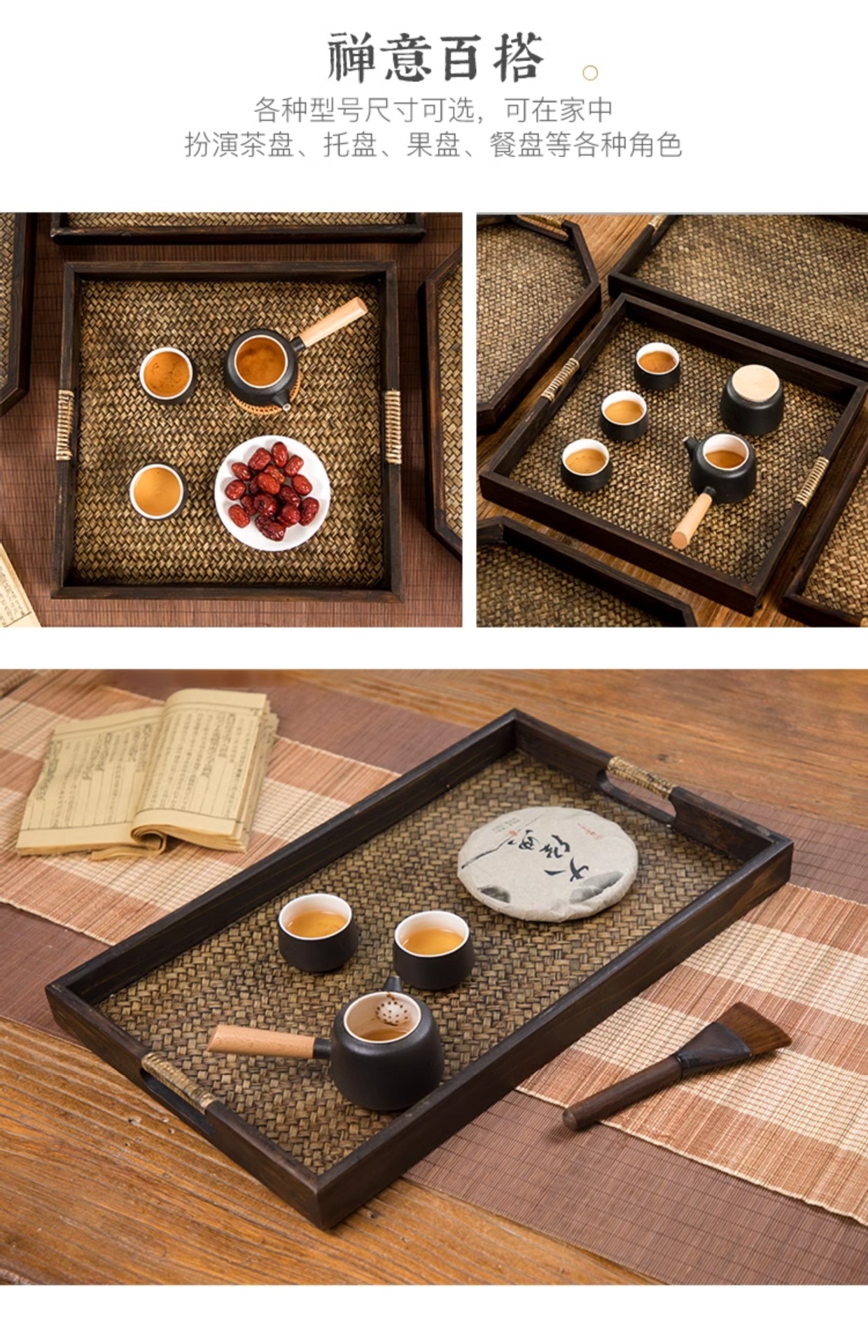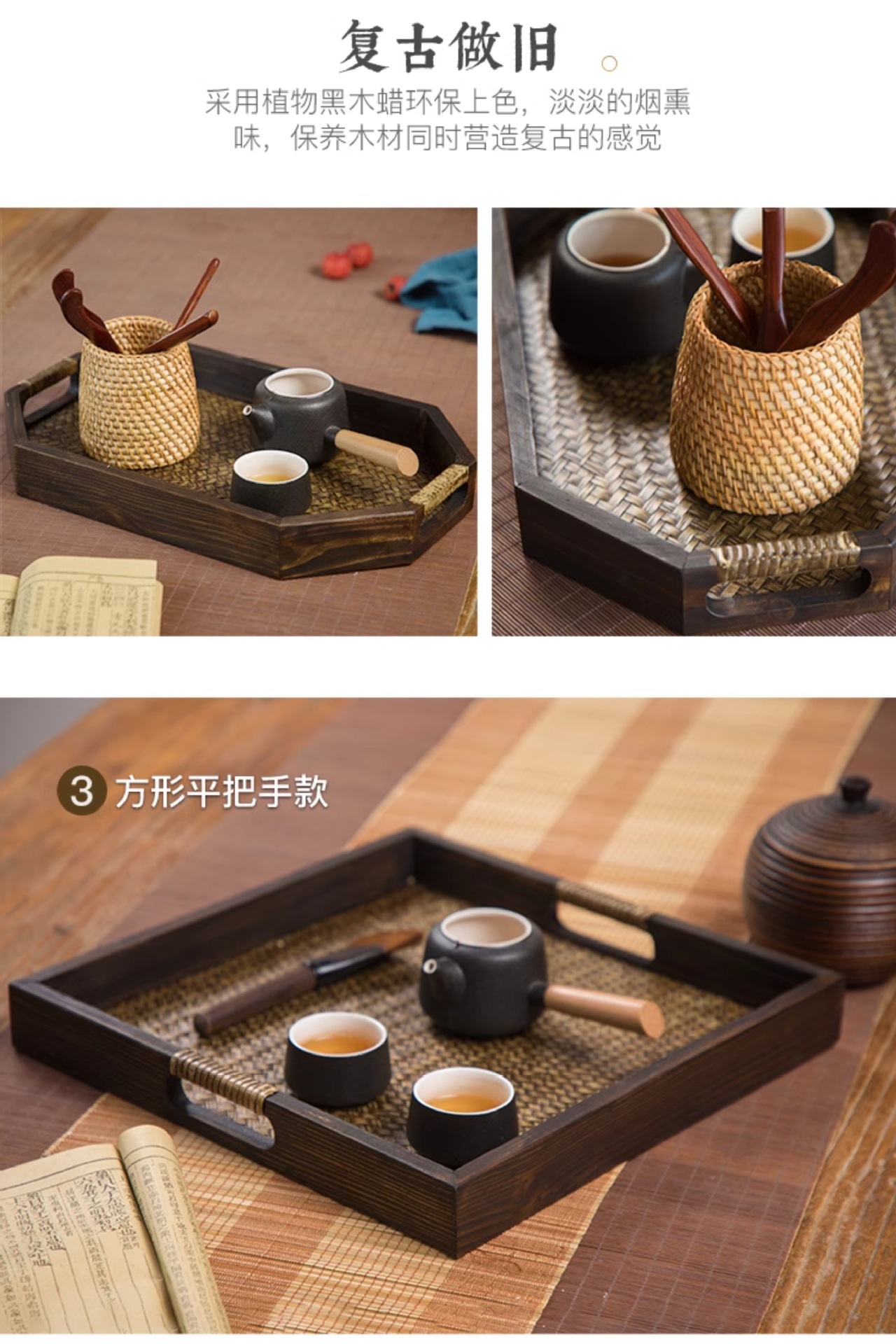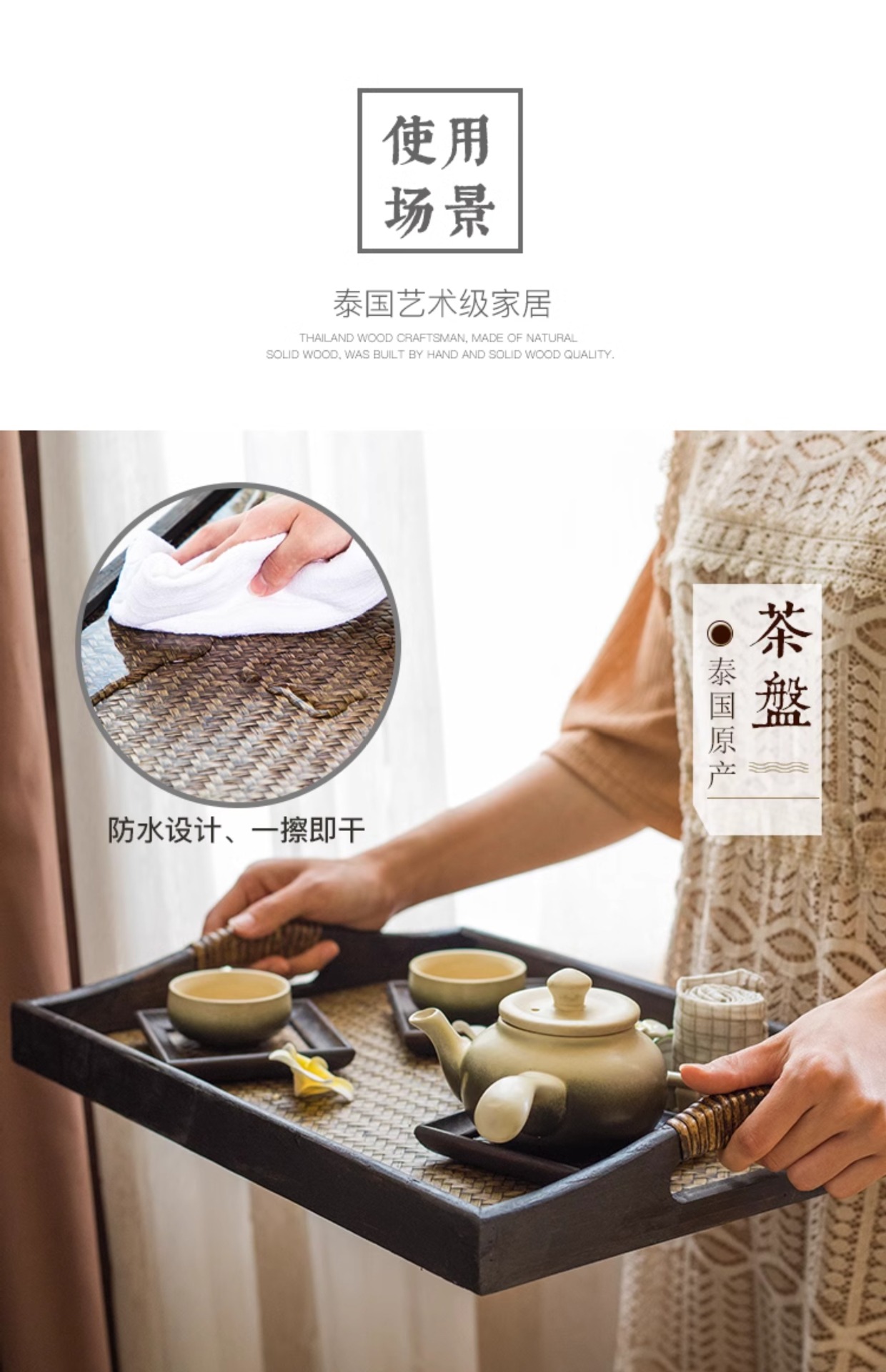 일본식 나무 접시 등나무 트레이 태국식 단단한 나무 미용실 차 트레이 복고풍 중국식 가정용 찻잔 받침 B&스토어 가기