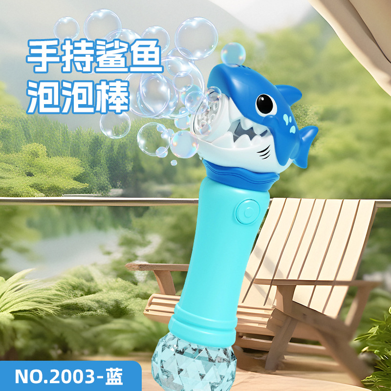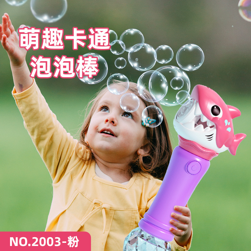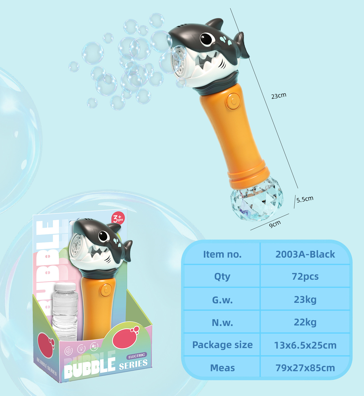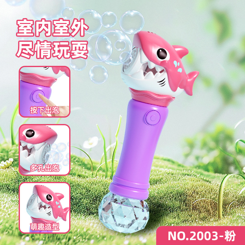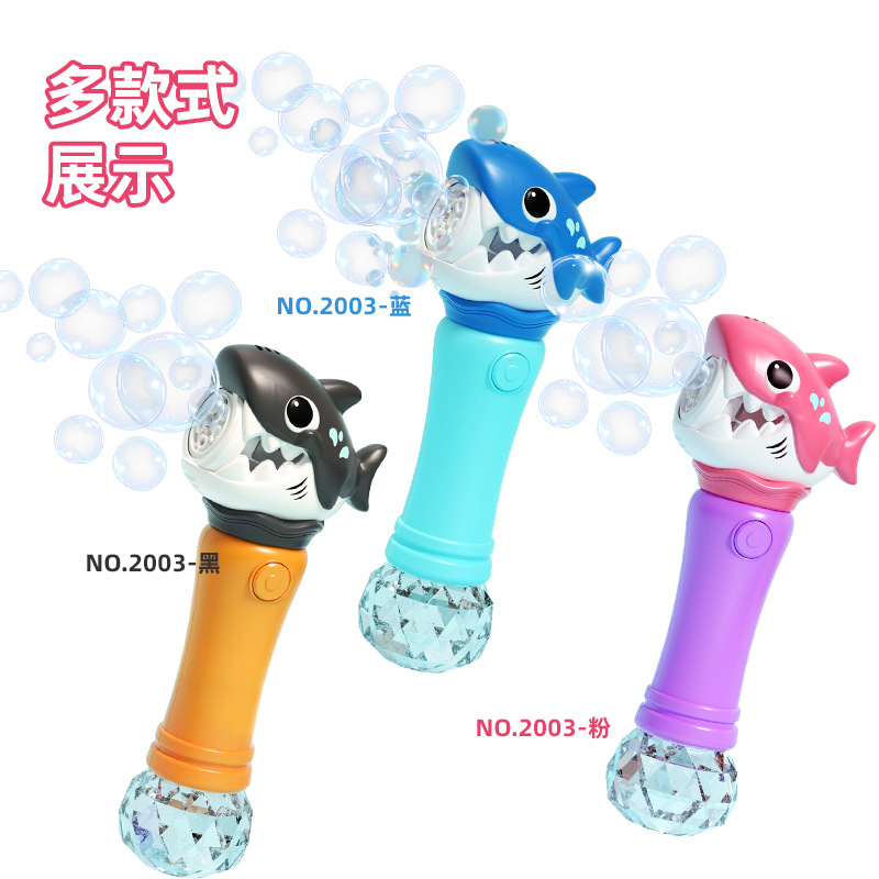 국경 간 조랑말 버블 머신 장난감 휴대용 소리와 빛 전기 어린이 소년과 소녀 다공성 상어 버블 건