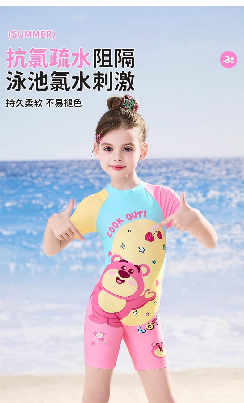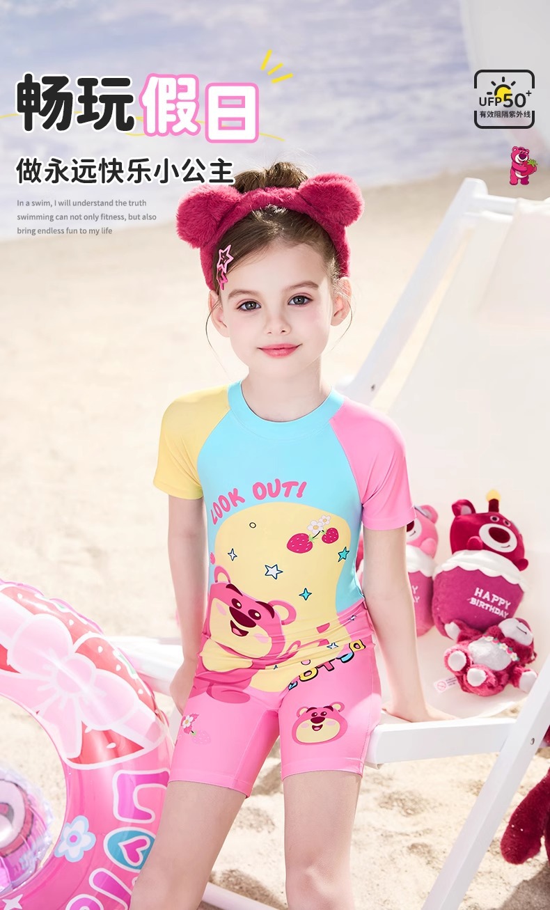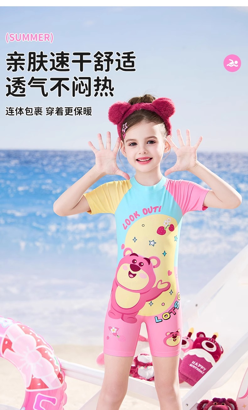 디즈니 2025 새로운 어린이 수영복 소녀 원피스 자외선 차단제 속건성 수영복 중소형 어린이를위한 귀여운 수영복