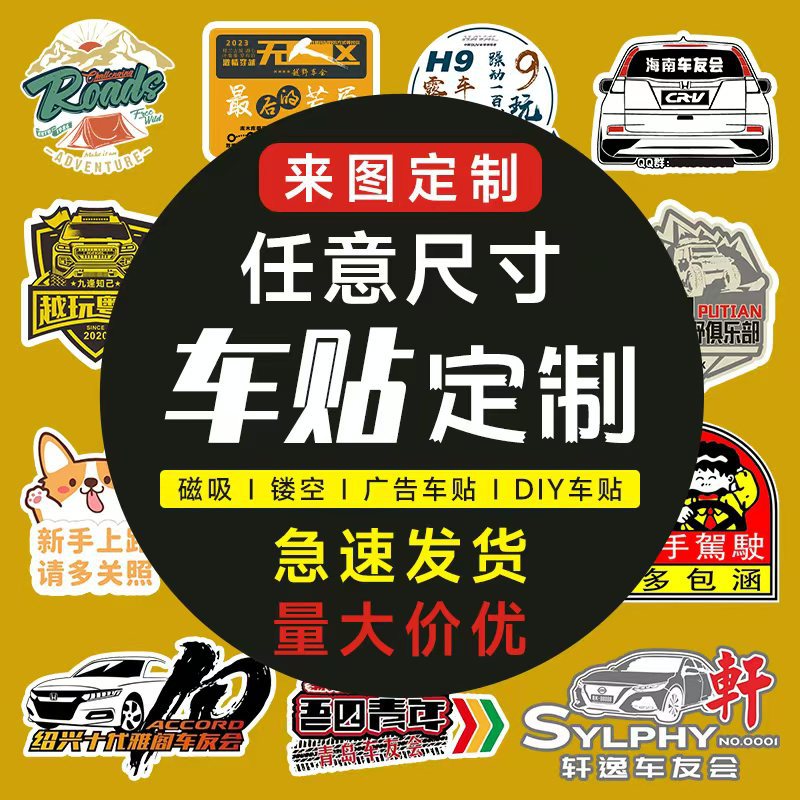 厂家车贴定制不干胶贴纸pvc车身贴车友会文字logo车窗广告贴纸
