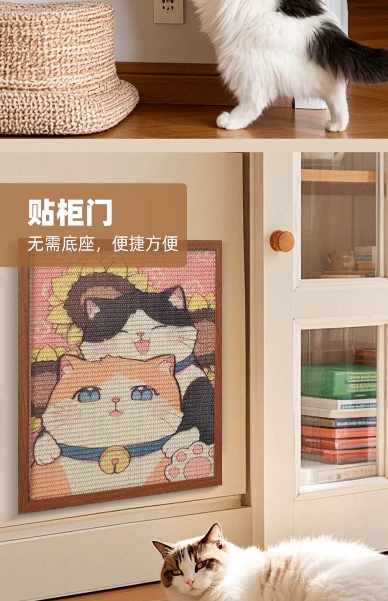 • [고양이 다섯 마리와 바다] 54.5*44CM 사이잘 벽걸이 액자 고양이 긁는 기둥