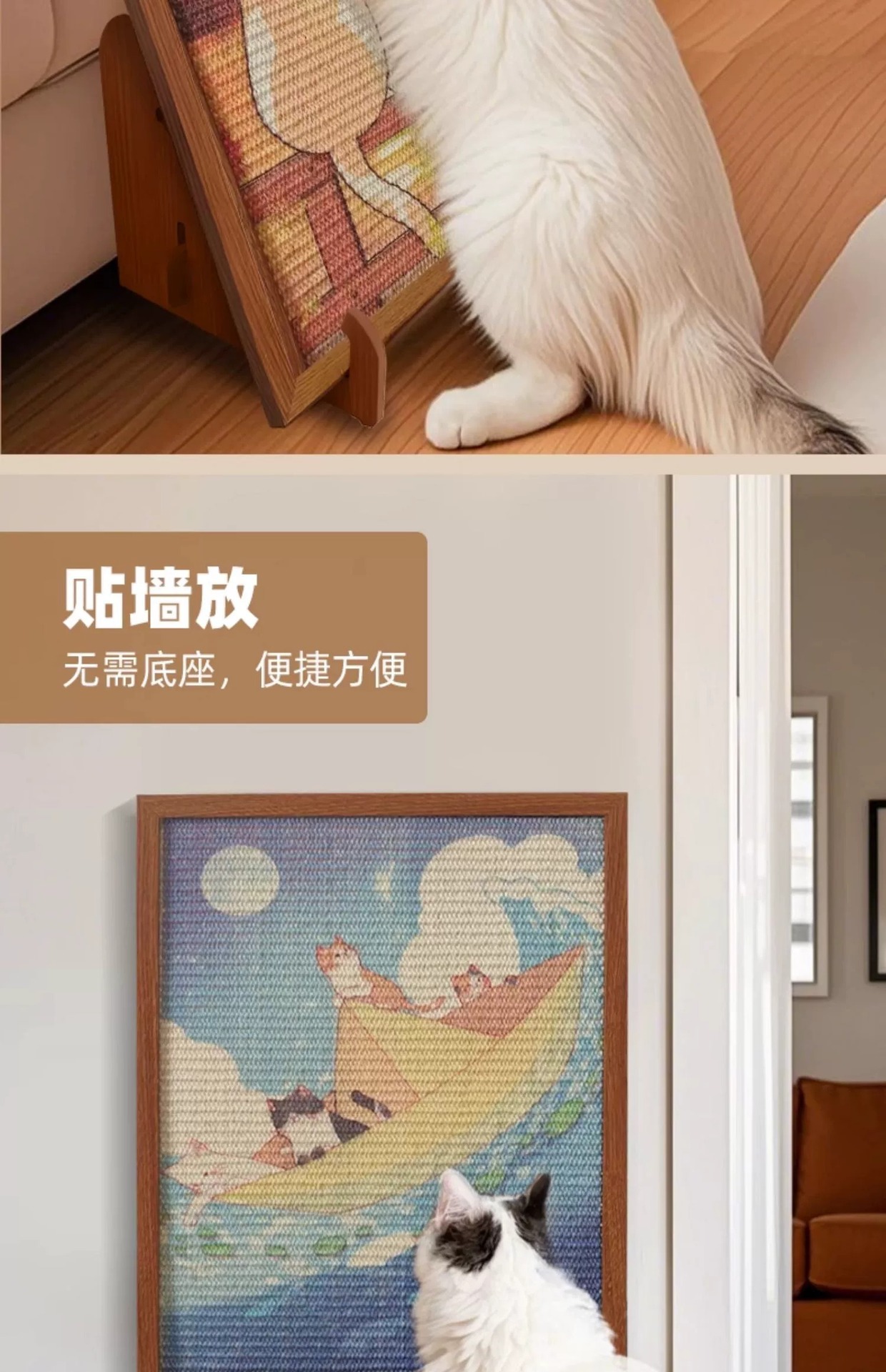 • [고양이 다섯 마리와 바다] 54.5*44CM 사이잘 수직 액자 고양이 긁는 포스트