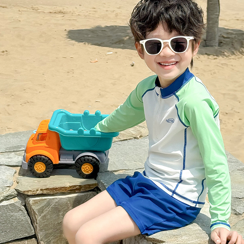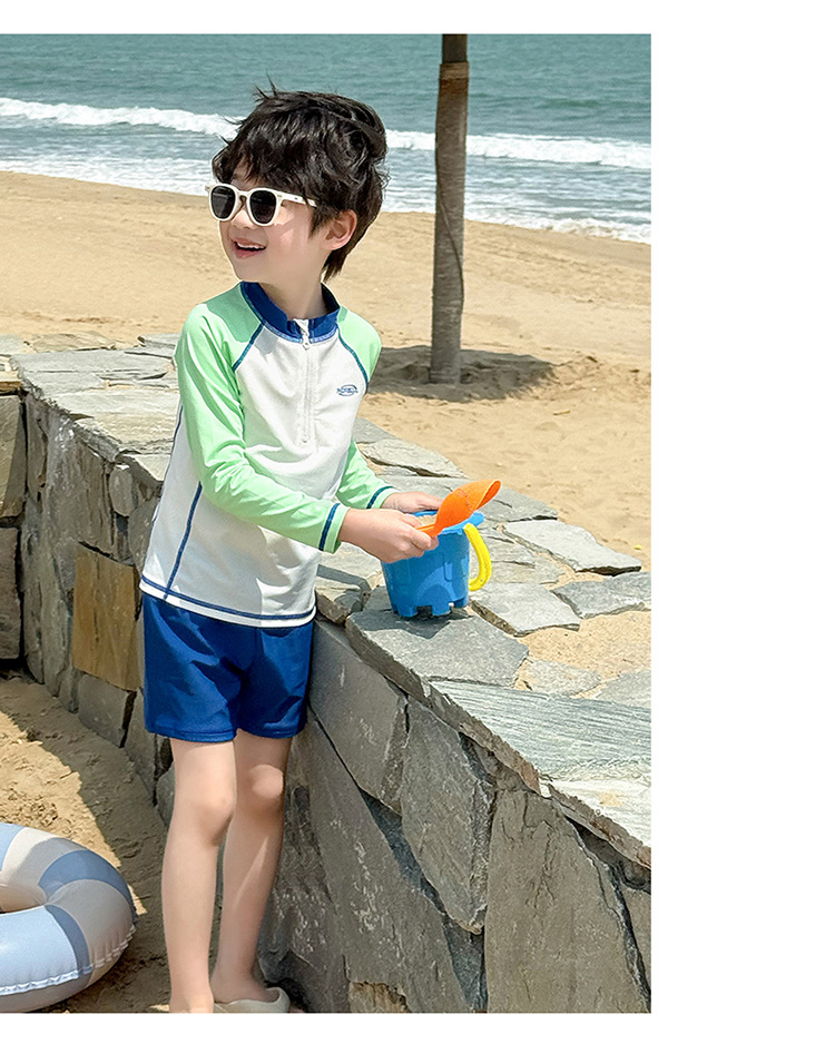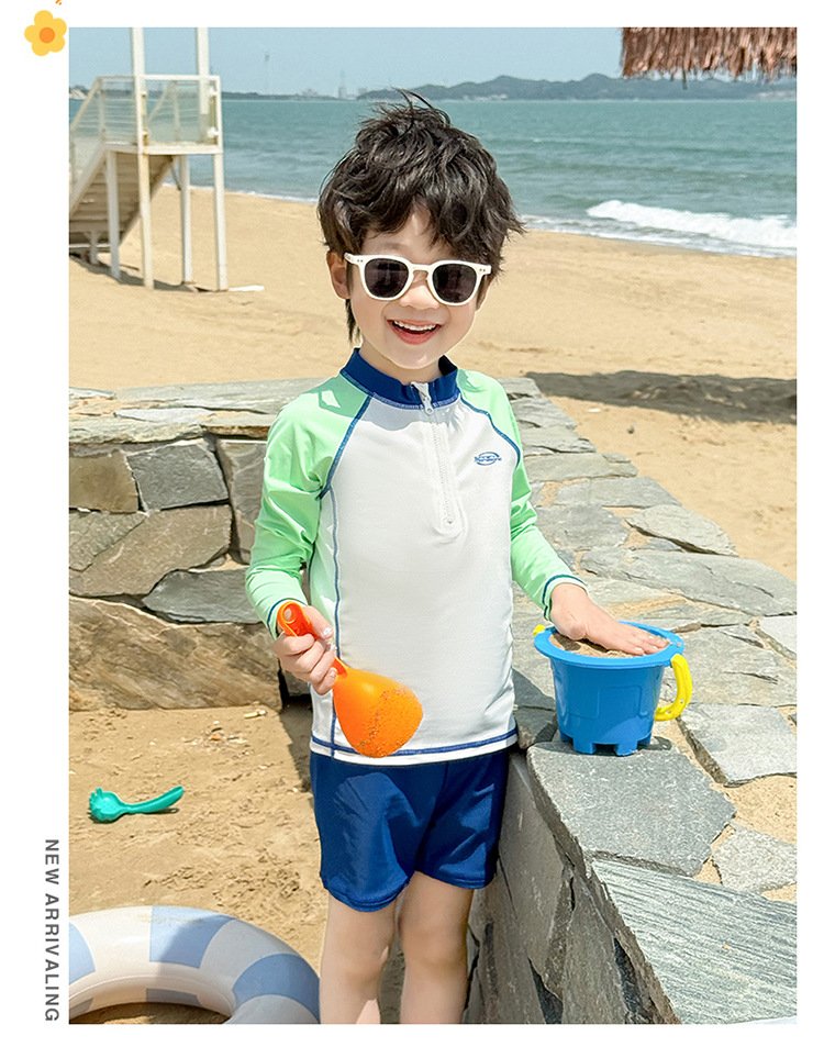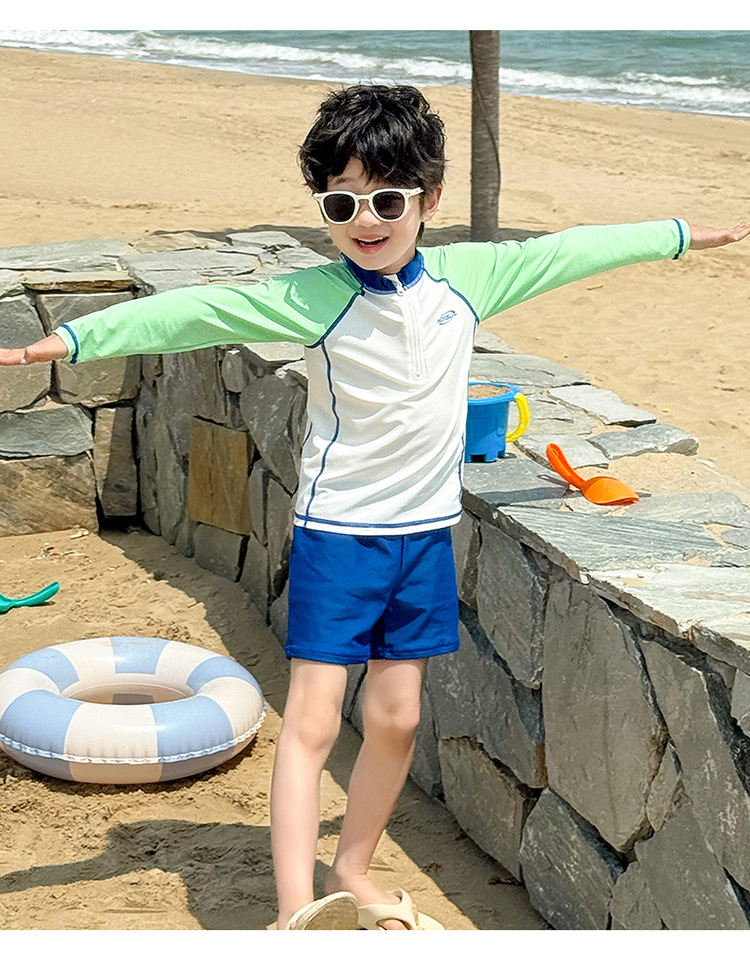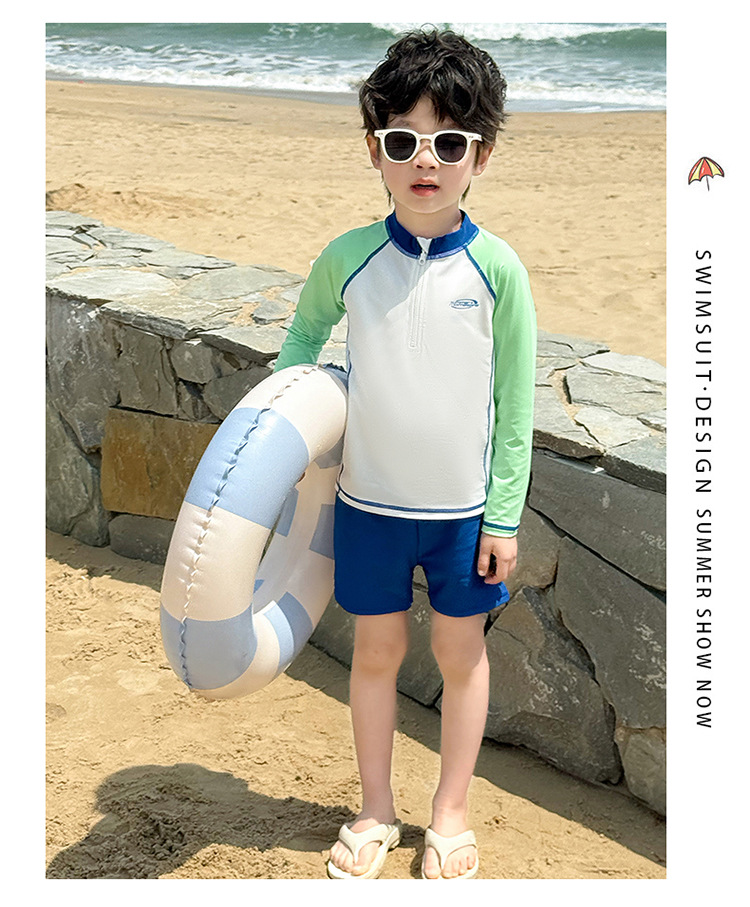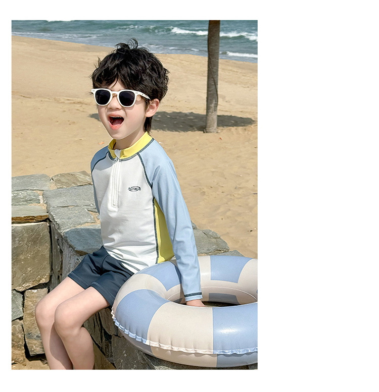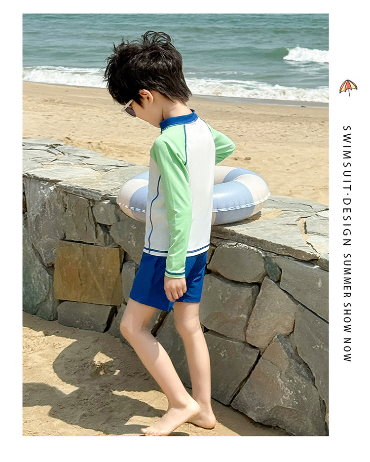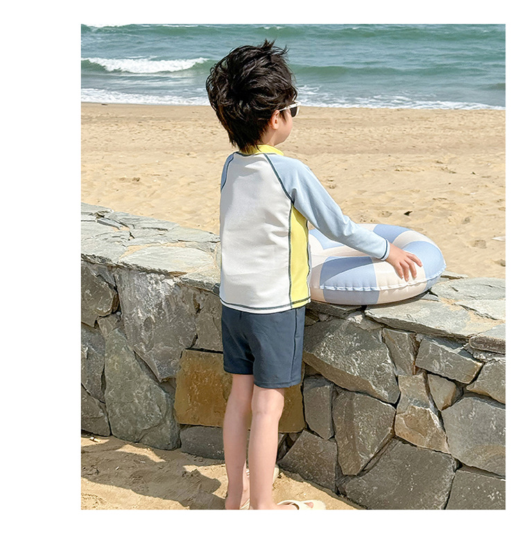 새로운 어린이 수영복 스플릿 소년 휴가 2 색 스플 라이스 수영복 소년 온천 의류 해변 수영복