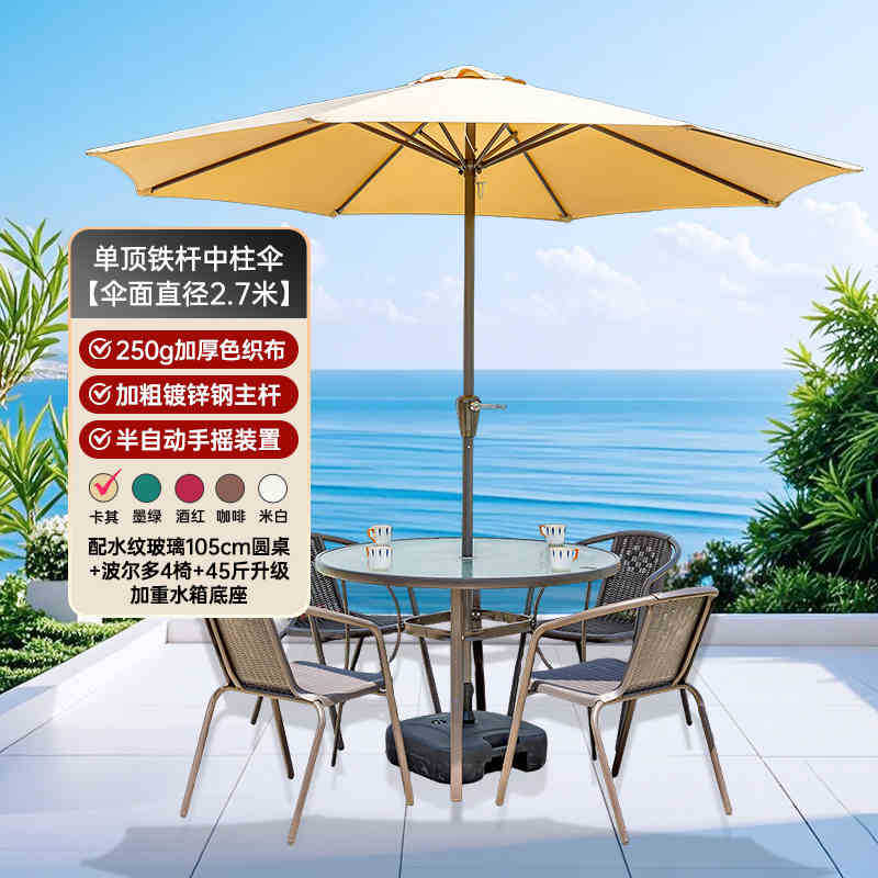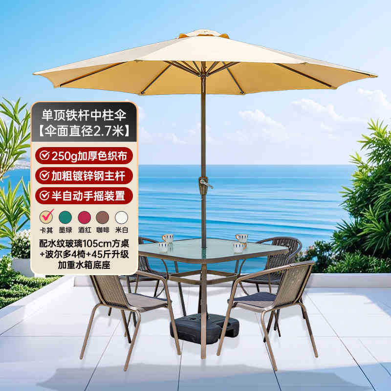 • [4세트] 물무늬 유리 105cm 사각 테이블 5종 세트 + 철제 중기둥 우산 2.7m (물탱크 베이스) 구멍이 있는 테이블 상판
