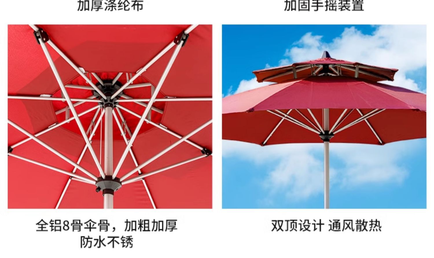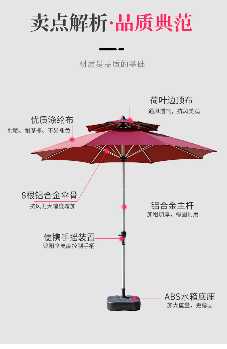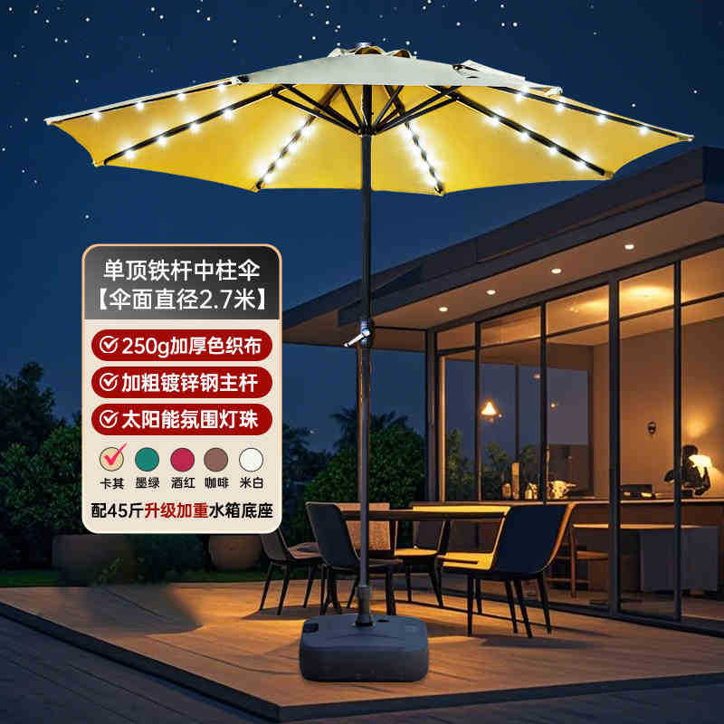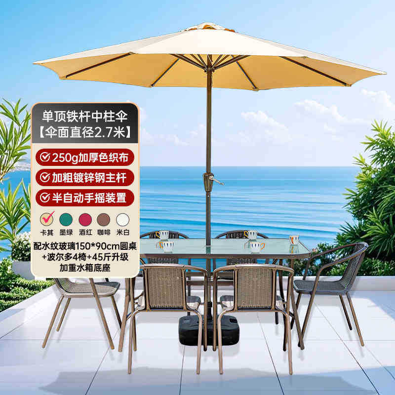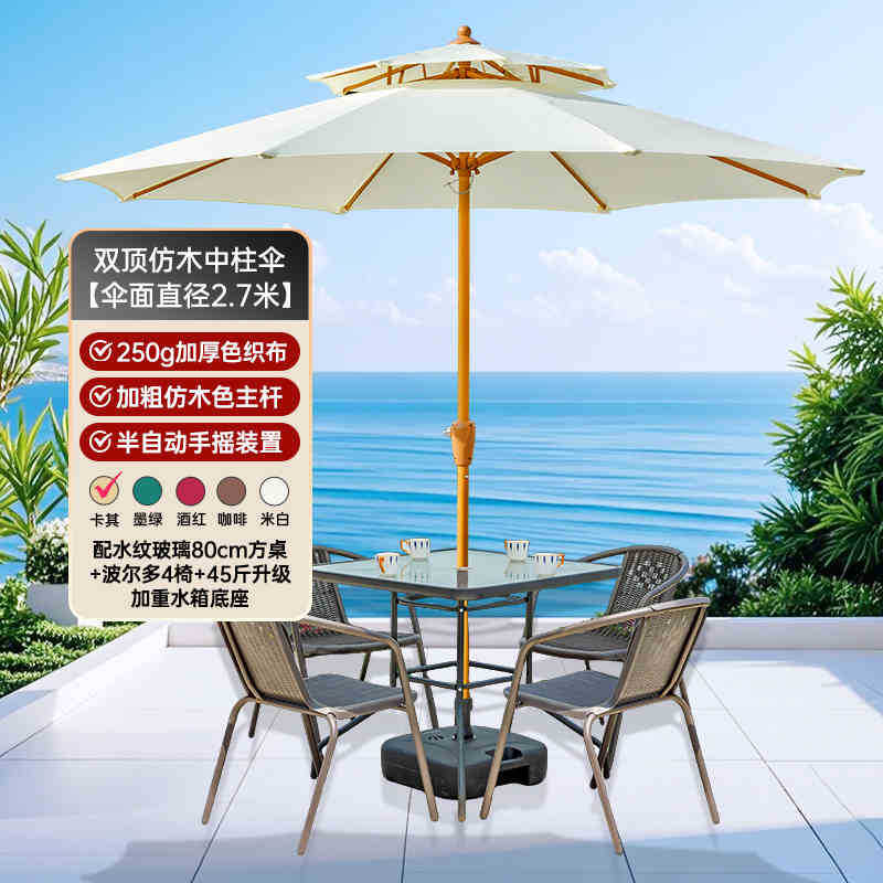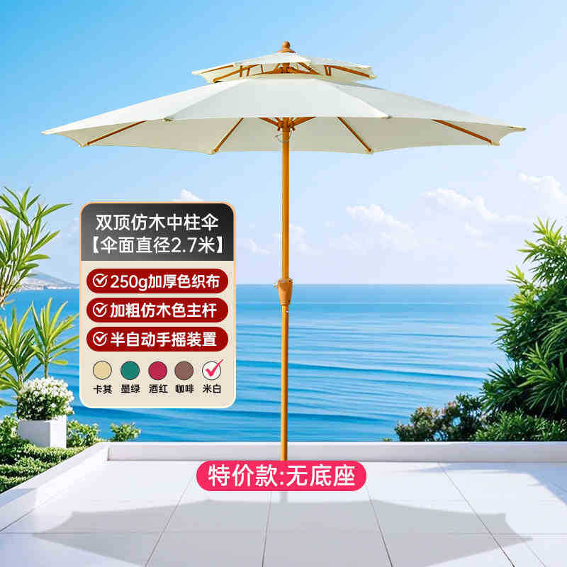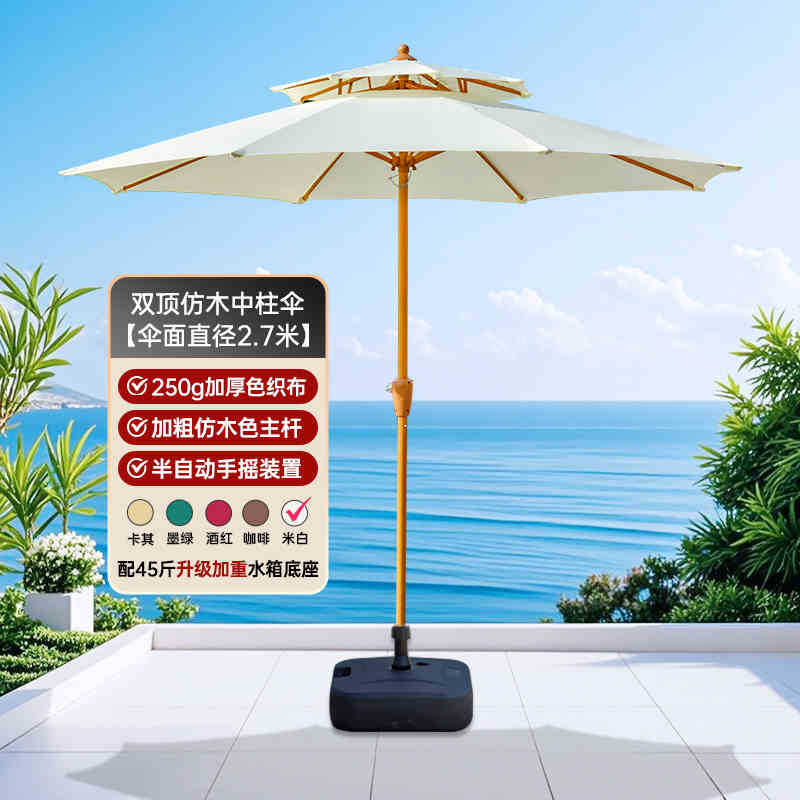 • [고급 인조 나뭇결] 이중 철제 중기둥 우산 원형 2.7m + 물탱크 베이스