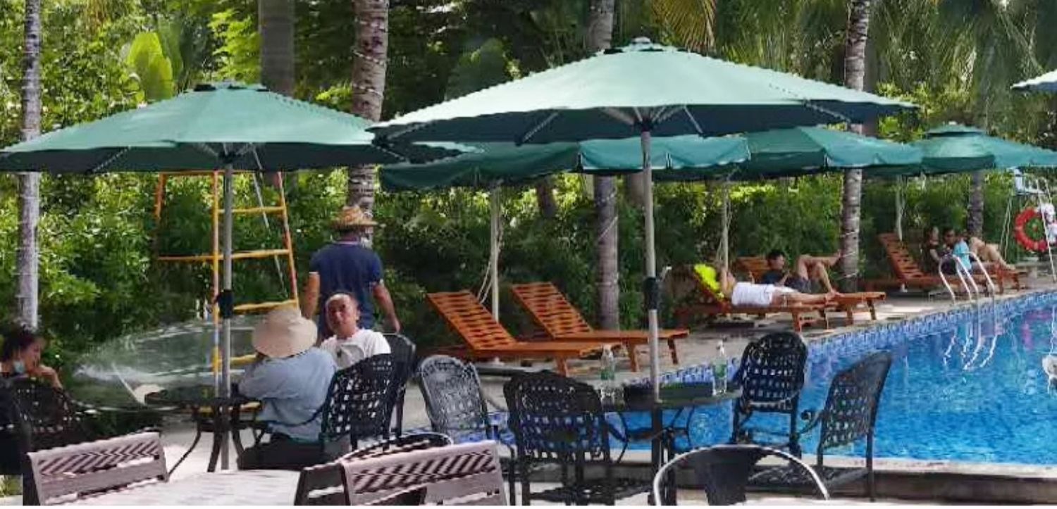 • [5세트] 물무늬유리 150*90cm 롱테이블 7종세트 + 철제 중기둥우산 2.7m (물탱크받침) 구멍있는 탁상