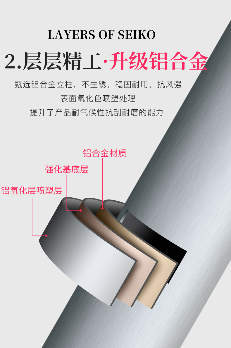 • [특별 제공] 단일 상단 브러시드 알루미늄 폴 라운드 2.7m - 베이스 없음