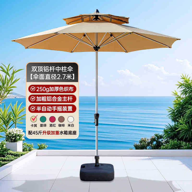 • [럭셔리 모델] 더블 탑 브러시드 알루미늄 폴 밀라노 센터 컬럼 우산 원형 2.7m + 물탱크 베이스