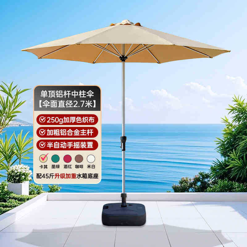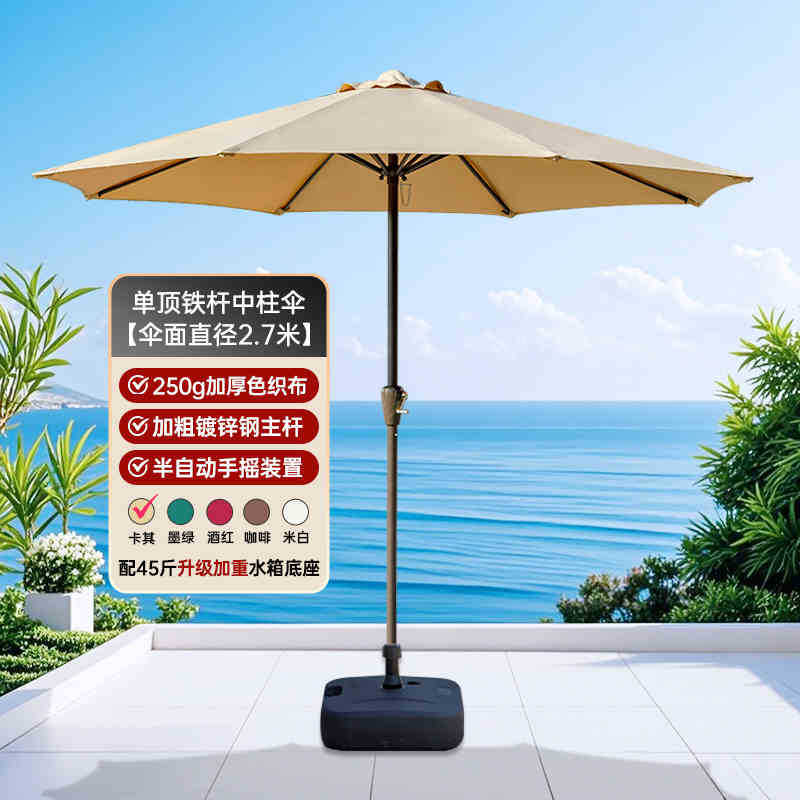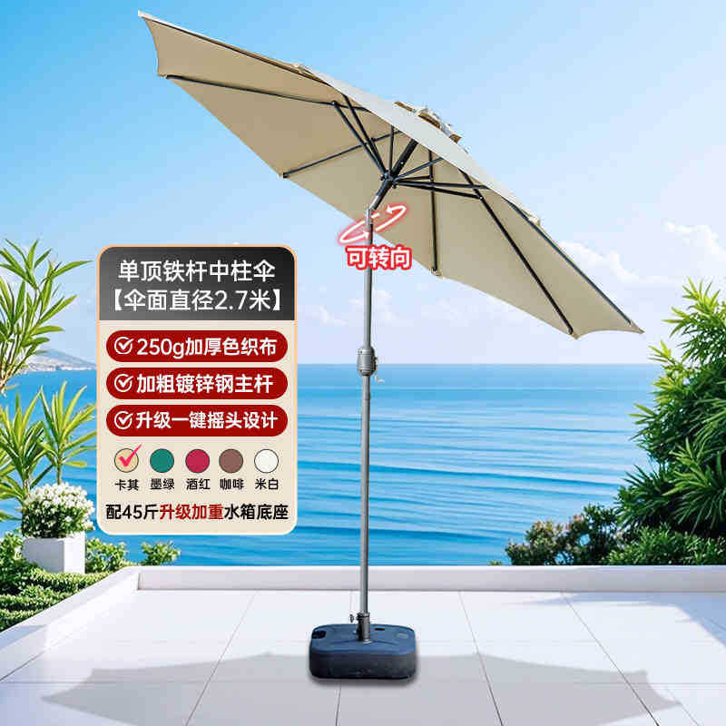 • [조향 가능] 싱글 탑 철제 센터 컬럼 우산 원형 2.7m + 물탱크 베이스